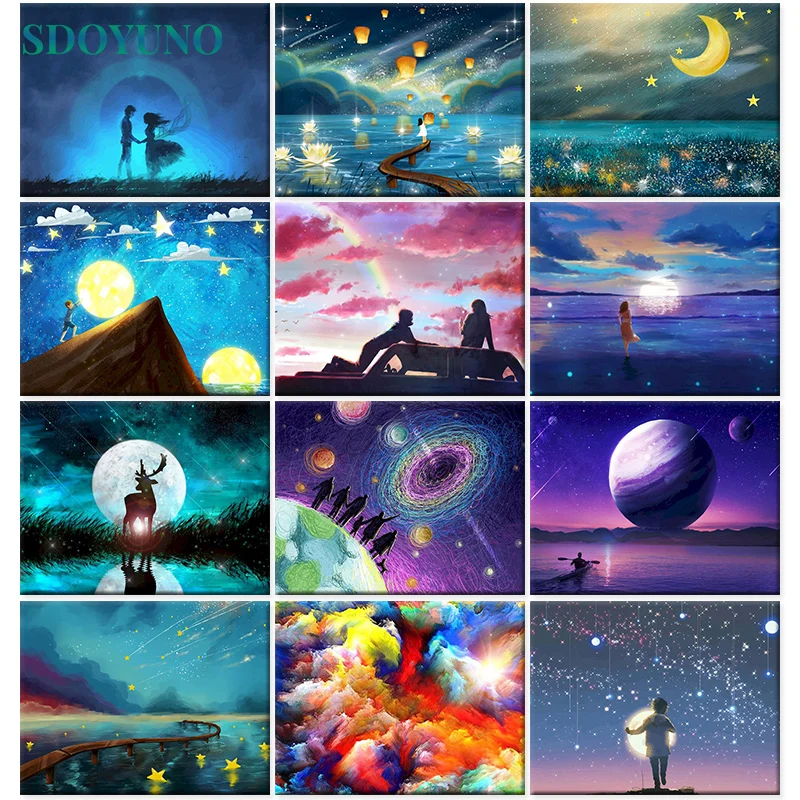 Пейзажная краска по номерам SDOYUNO, самодельная масляная краска по...