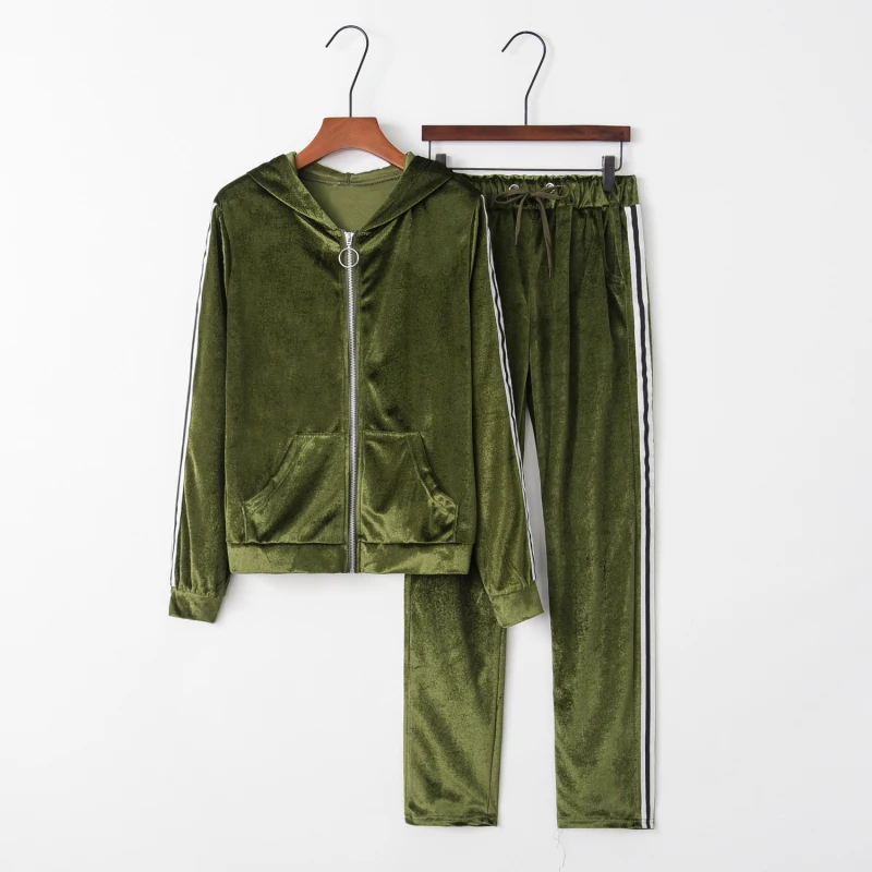Пол: женщинВозрастная группа: ВзрослыеКатегория спортивной одежды: уличная одежда, спортивный костюм, спортивный костюмТип одежды: одежда для отдыха, костюмЗанятия: Семейный пикник, тренировки в тренажерном зале, фитнес, бег,Событие для улицыПовод: ПовседневныйСезон: зимаЭластичность: эластичныйФункция: теплая, Влагоотводящая, ветрозащитная, дышащая, удобнаяТкань: велюрДлина рукава: длинный рукавТалия: высокая талияДизайн: полная молния, 2 предметаВырез: с капюшономУзор: полоскиЧто вы получите: 1 * брюки, 1 * Куртка