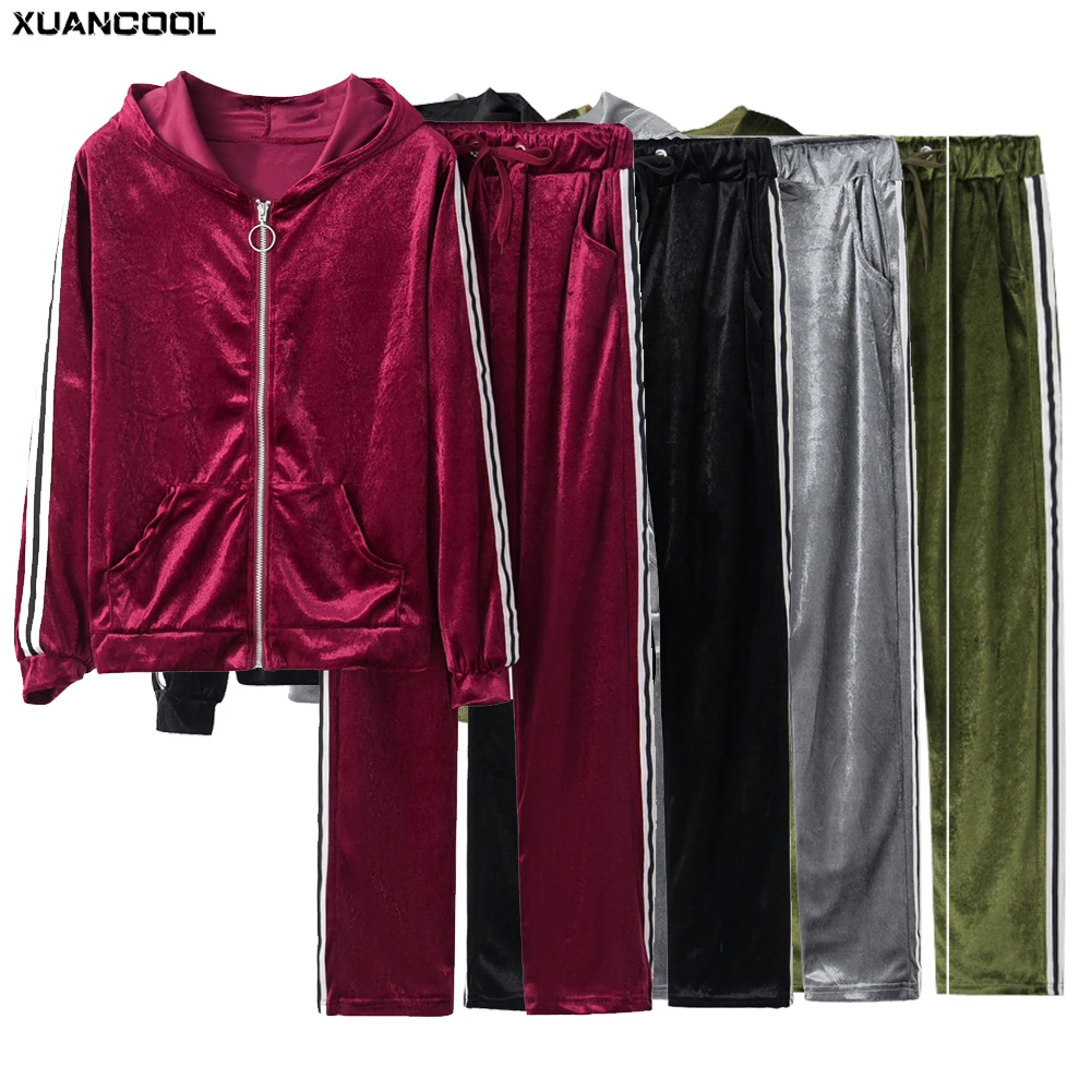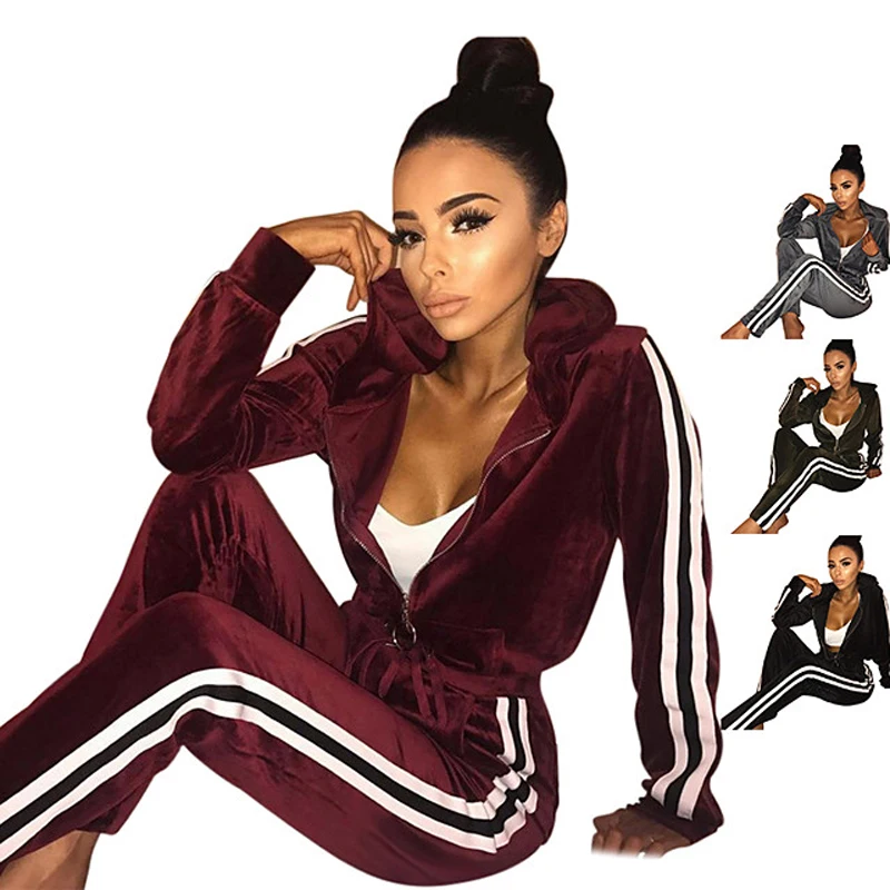 XUANCOOL 2021, зимний комплект из 2 предметов, женская одежда для бега, женские спортивные костюмы, велюровая теплая спортивная одежда с длинным рукавом, полосатая женская одежда