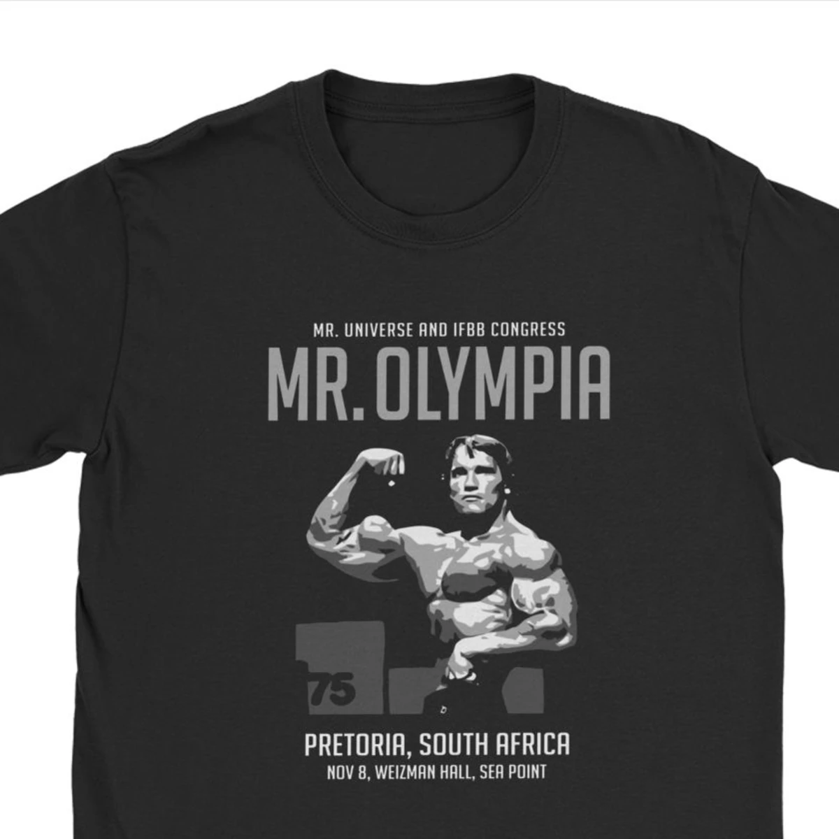 Арнольд Шварценеггер 1975 г. Олимпия, мужские футболки, новинка, футболка с круглым вырезом, одежда из чистого хлопка