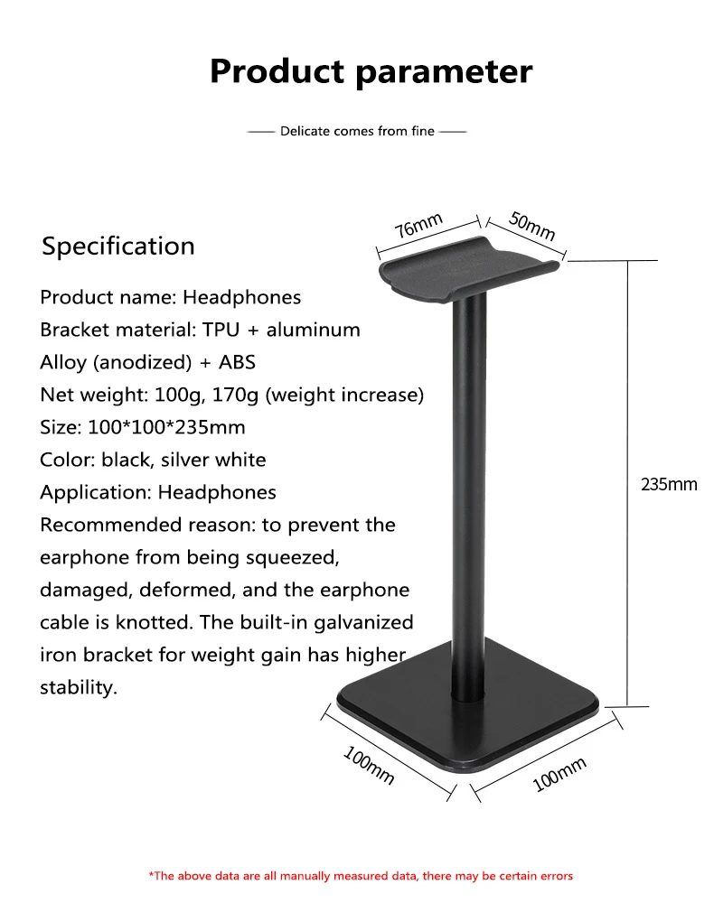 3. Прочная основа-обширное плотное основание обеспечивает стабильность, так что Подставка для наушников не будет махать и не наклоняться; Силиконовые подушечки в нижней части обеспечивают превосходное сцепление с глянцевыми поверхностями