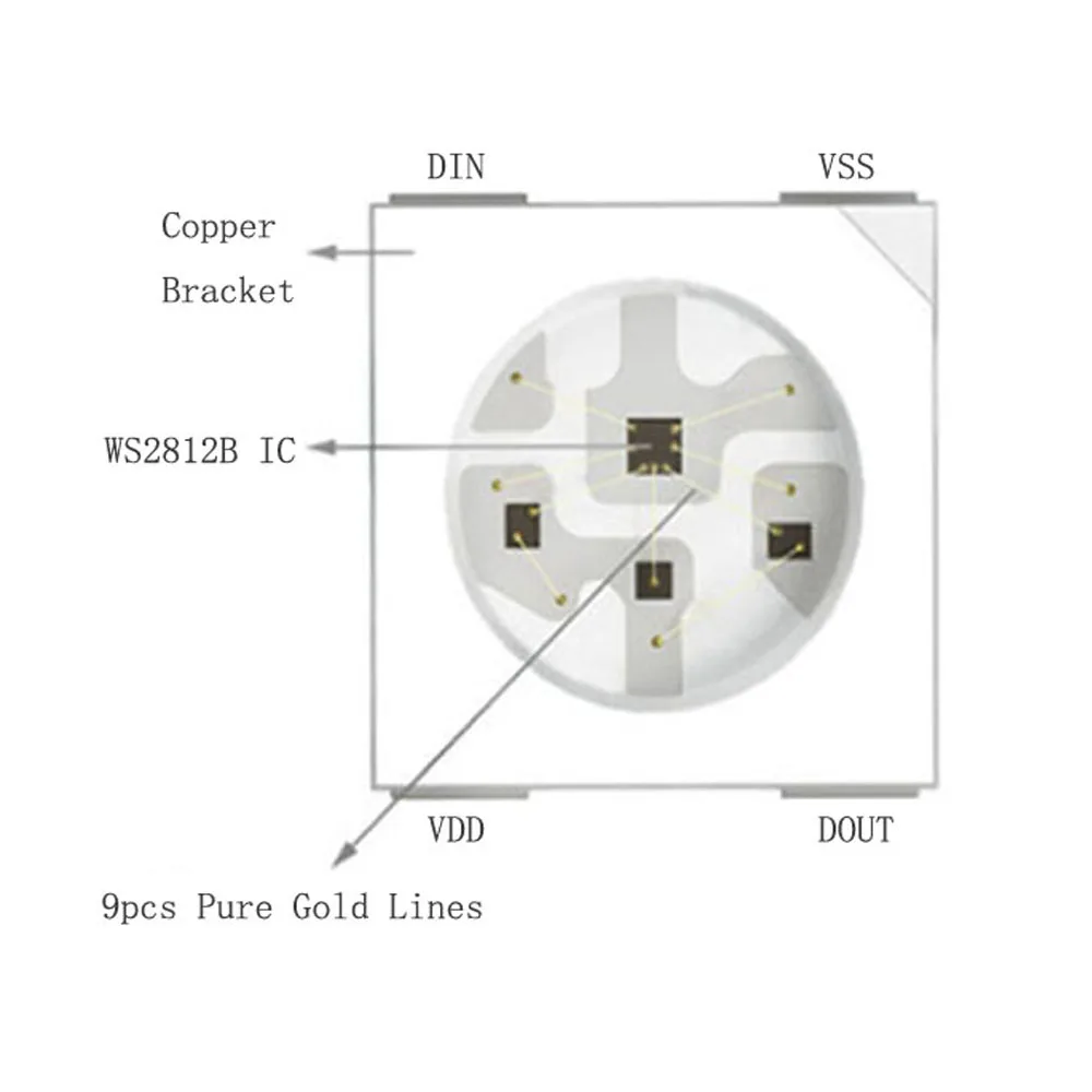 Тип IC: улучшенная версия WS2812 IC (Встроенный светодиодный индикатор 5050SMD RGB)