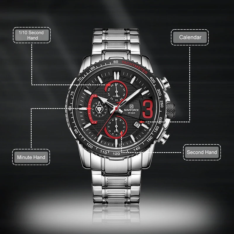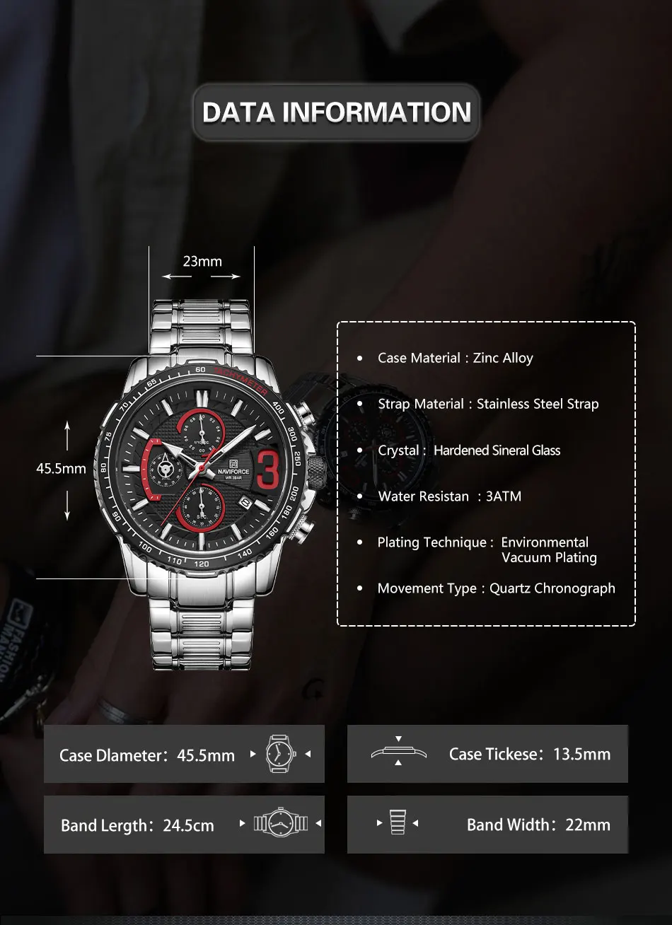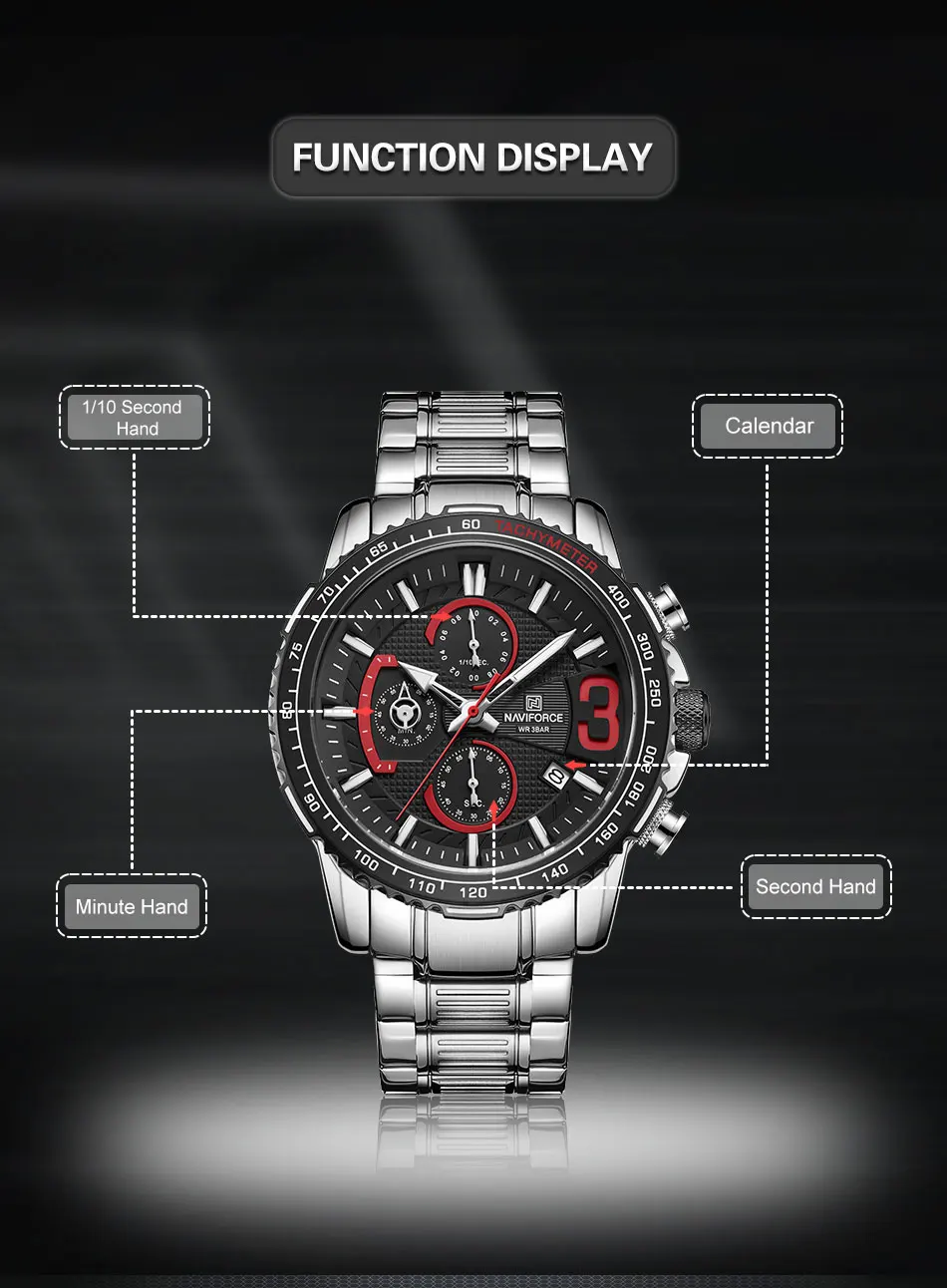 Часы-хронограф NAVIFORCE мужские, спортивные, кварцевые, водонепроницаемые, с датой, 2020