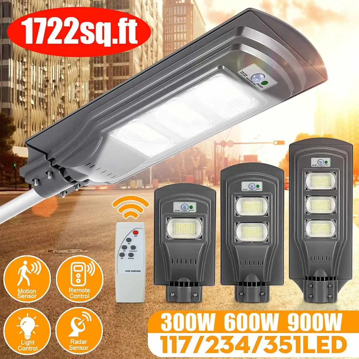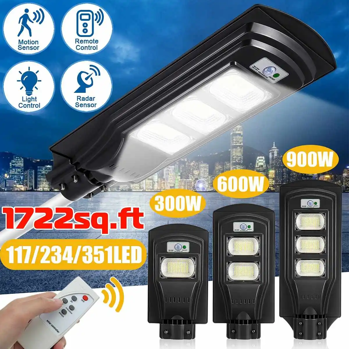 300W600W900 Вт Светодиодный уличный фонарь на солнечной батарее уличный светильник на солнечной энергии с радар движения PIR Сенсор стены уличный свет безопасности лампа для сада во дворе