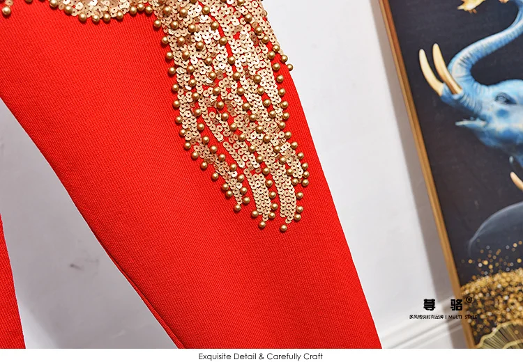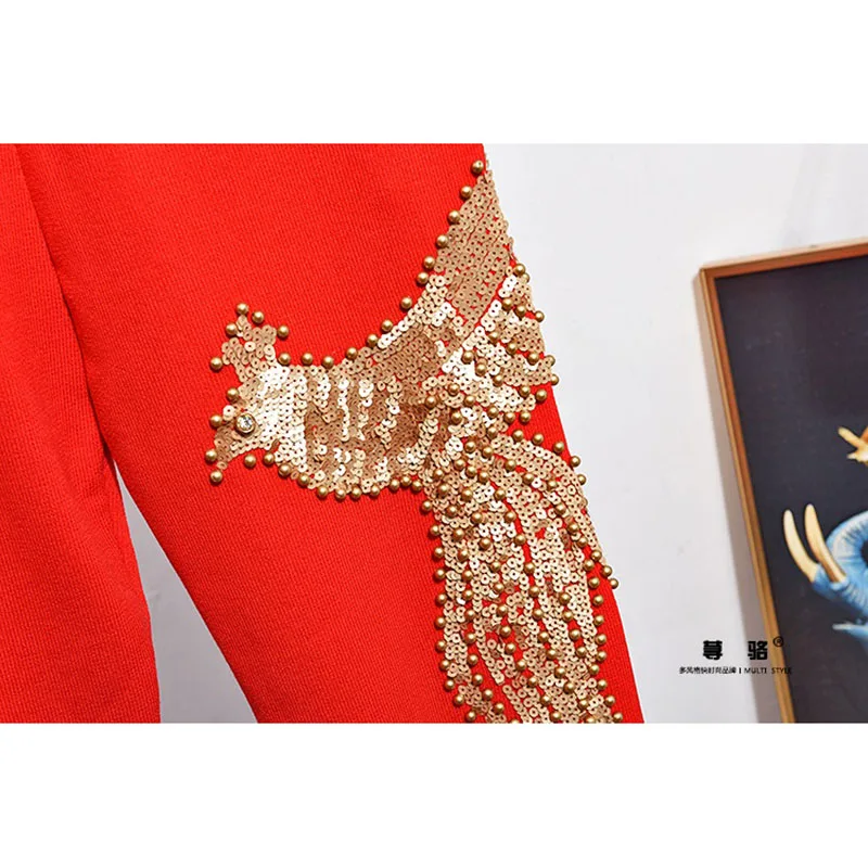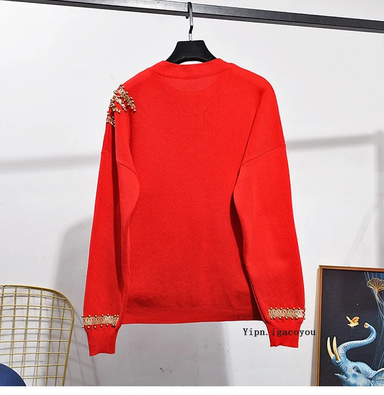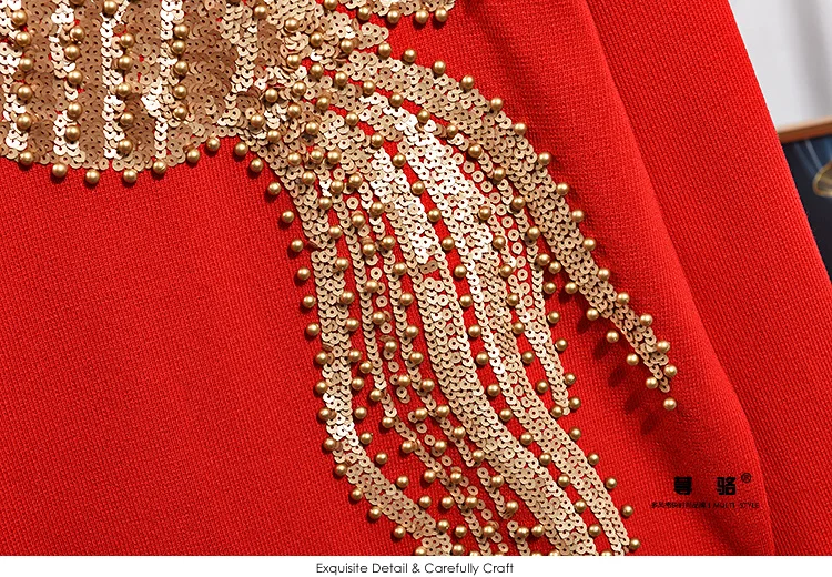 Модный красный вязаный спортивный костюм с бисером и блестками Фени...