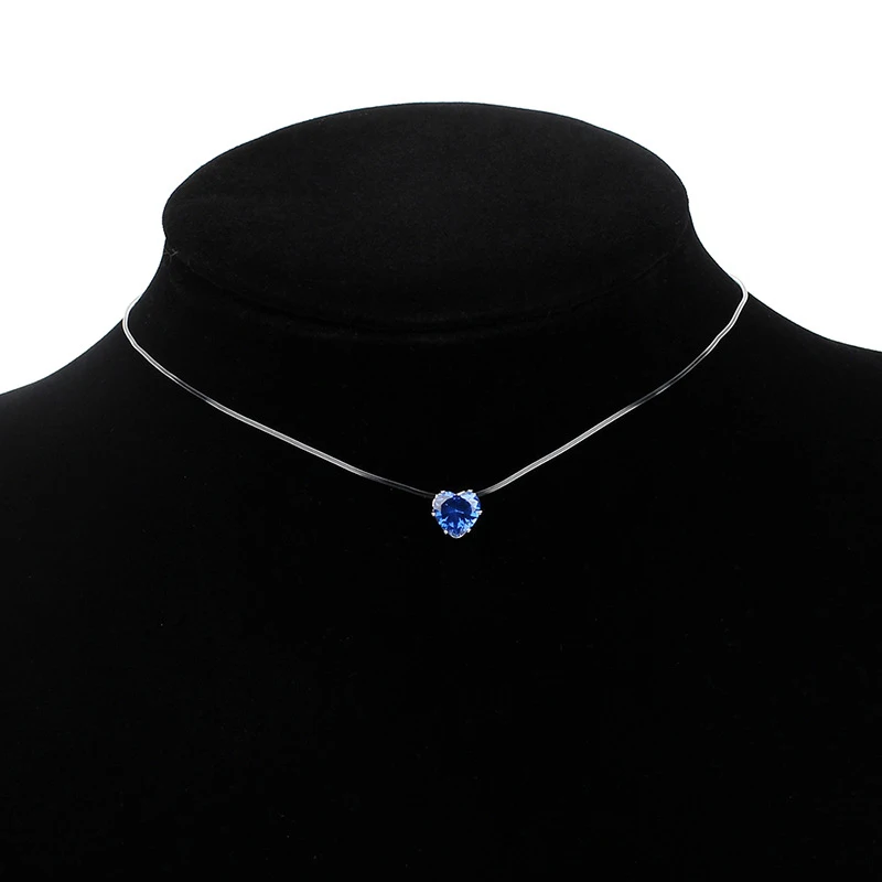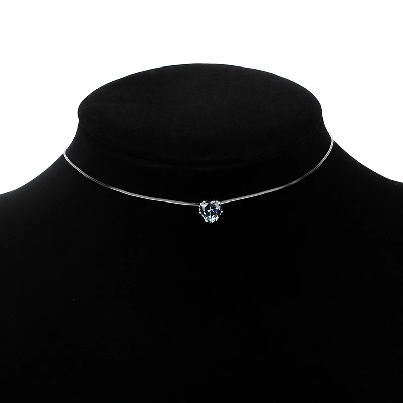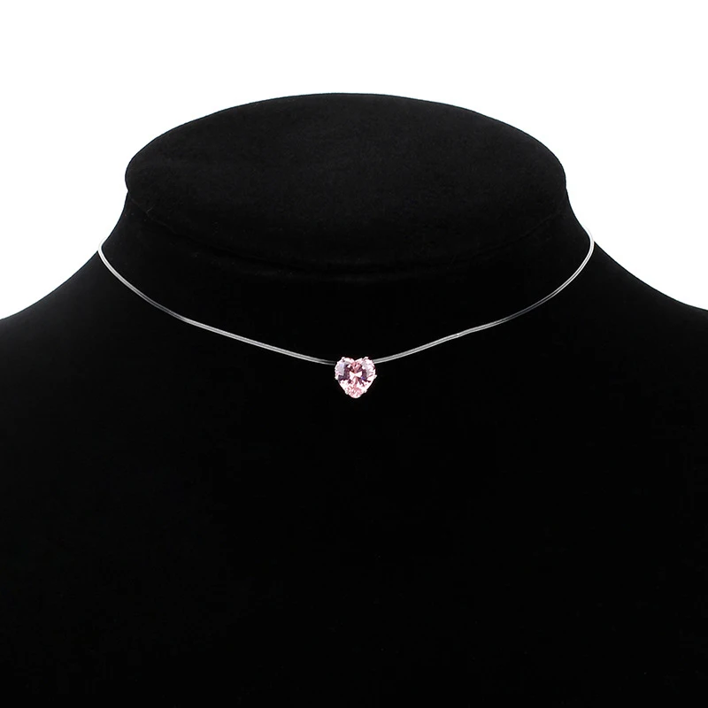 Женское колье-чокер на леске, прозрачное ожерелье в форме сердца, невидимая цепочка, ювелирные изделия, кулон в виде сердца со стразами
