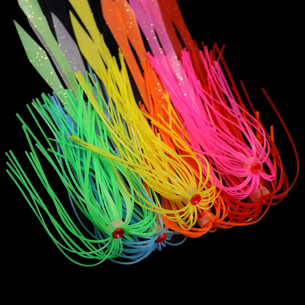 Силиконовая юбка осьминогаЦвет: розовый, зеленый, белый, красный, оранжевый, белый, черныйПосылка: в полиэтиленовом пакетеНормальный и светящийся эффектДлина: около 13-20 смМатериал: силиконПрименение: Спиннербейт Buzzbait jig материалы, материал для завязывания мухКомплектация: 10 шт./упак.