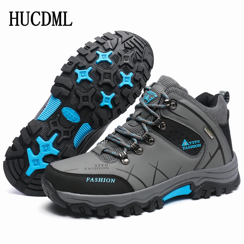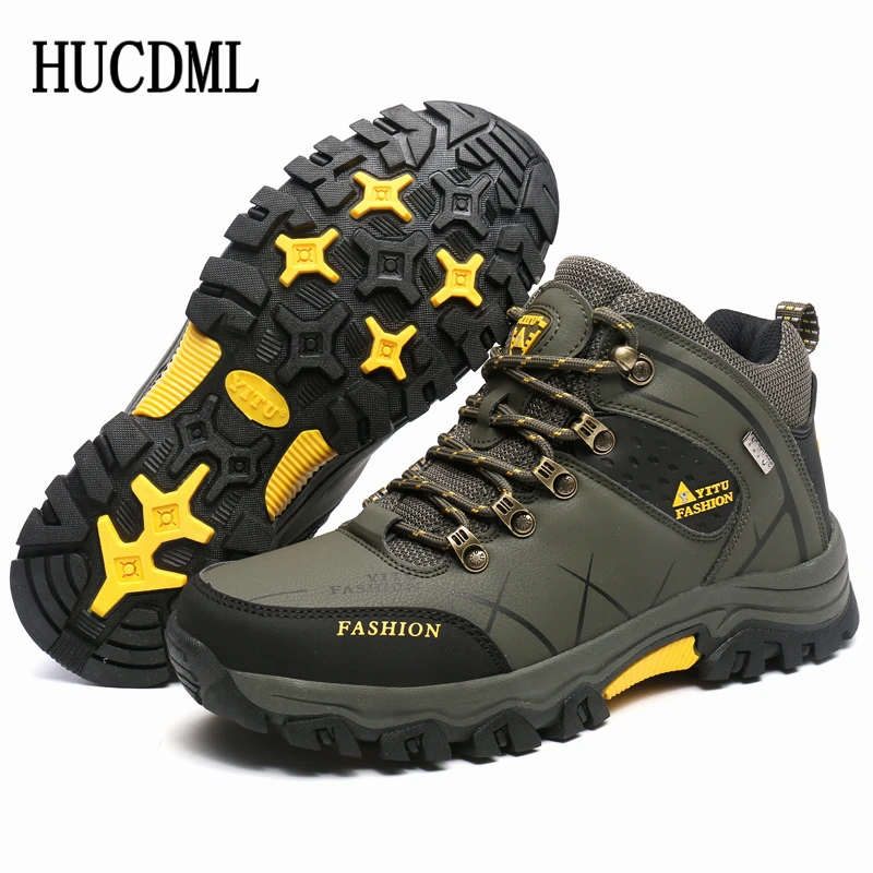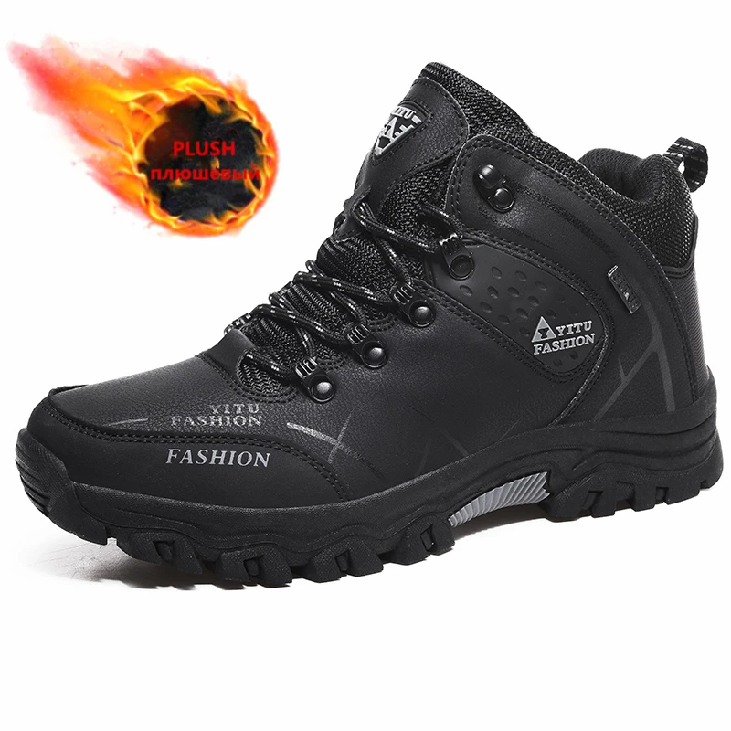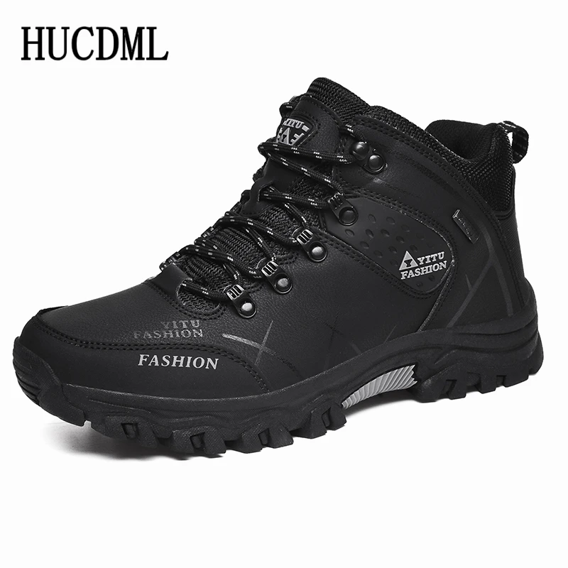 Мужские ботинки HUCDML, черные уличные Нескользящие походные ботинки, кожаные водонепроницаемые мужские кроссовки, рабочая обувь, зимние плюшевые ботинки для всех сезонов