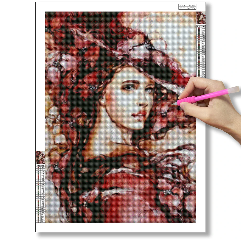 Алмазная вышивка XUEQIXIAOZU, полноразмернаякруглая девушка, портре...