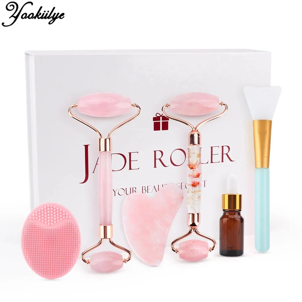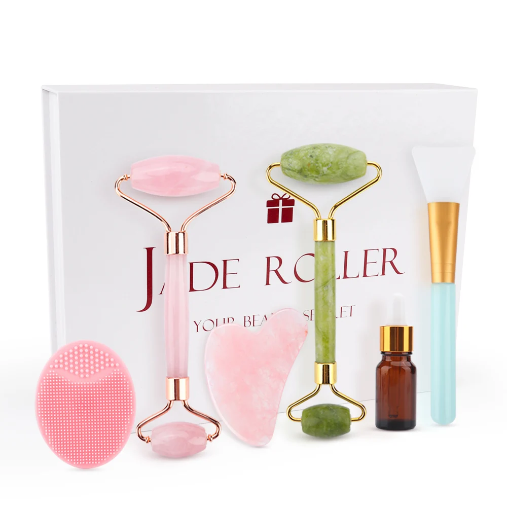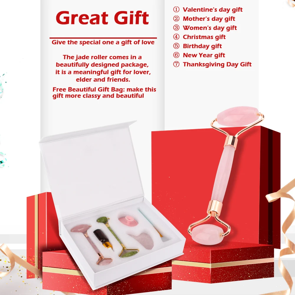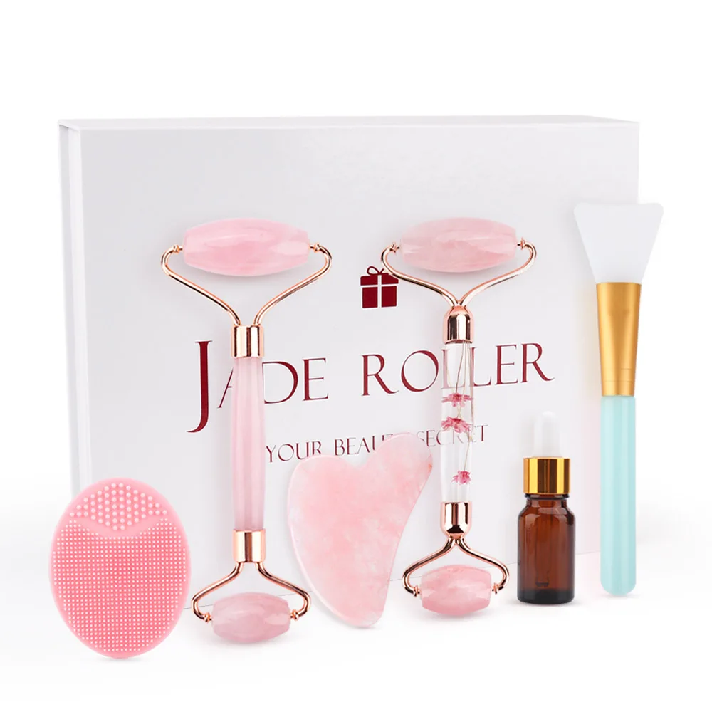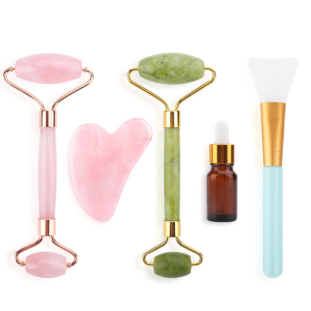 Двусторонний ролик из розового кварца, большой ролик идеально подходит для шеи, подбородка, щек и лба, в то время как ролик поменьше идеально подходит для области вокруг глаз, носа и губ. Ролик способствует кровообращению, что может уменьшить отечность и количество морщин