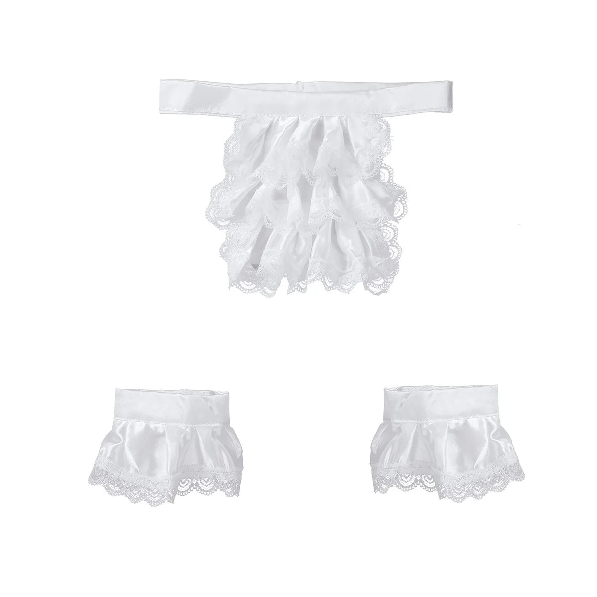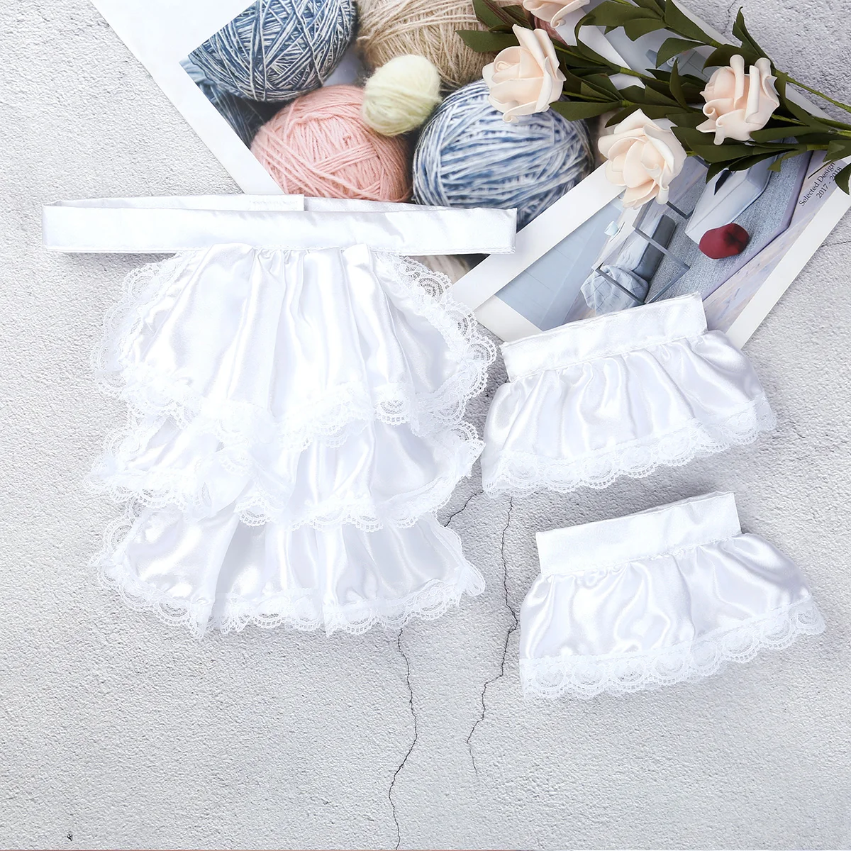 Набор включает: 1 жабо, 1 пара манжет Состояние: Абсолютно новый Материал: Атлас, кружево Цвет: Белый (как показано на фотографии)