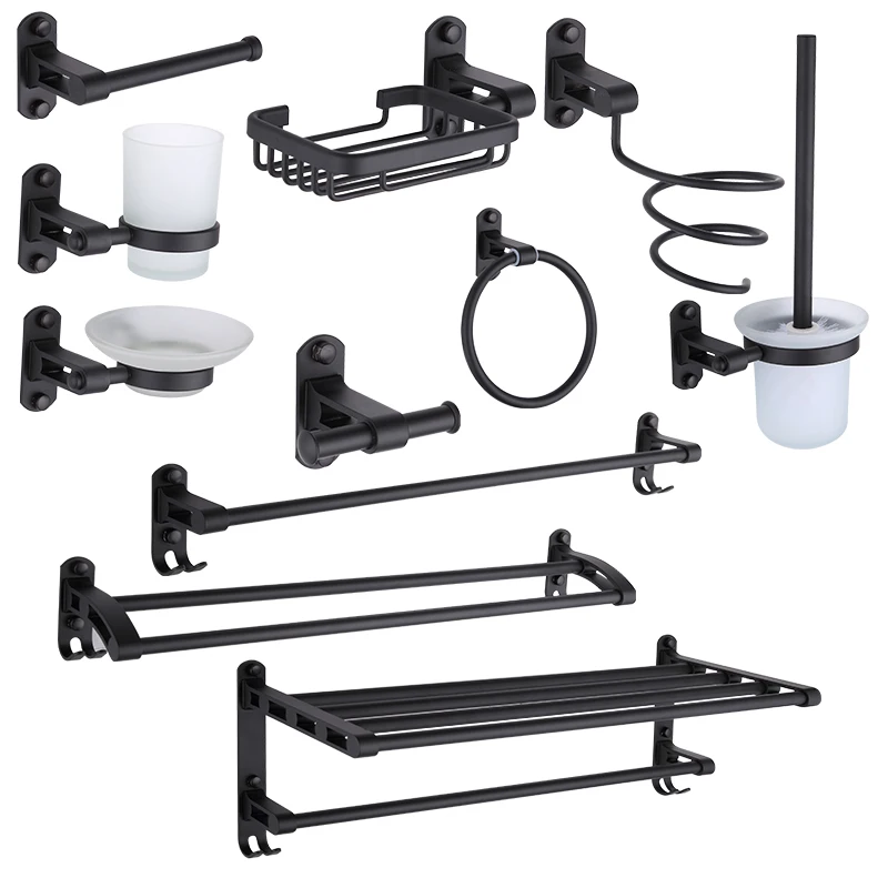 Алюминиевые аксессуары для ванной комнаты BECOLA, черная вешалка для полотенец, кольцо, держатель для фена, настенный держатель для туалетной бумаги, корзина для мыла