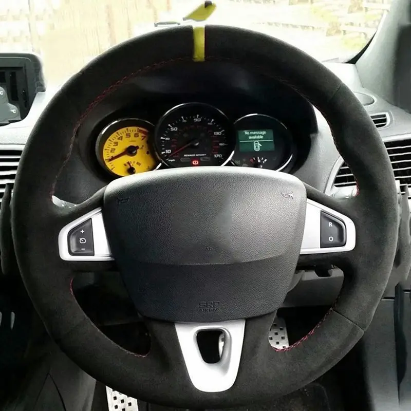 DIY черный вручную сшитый замшевый чехол рулевого колеса автомобиля...