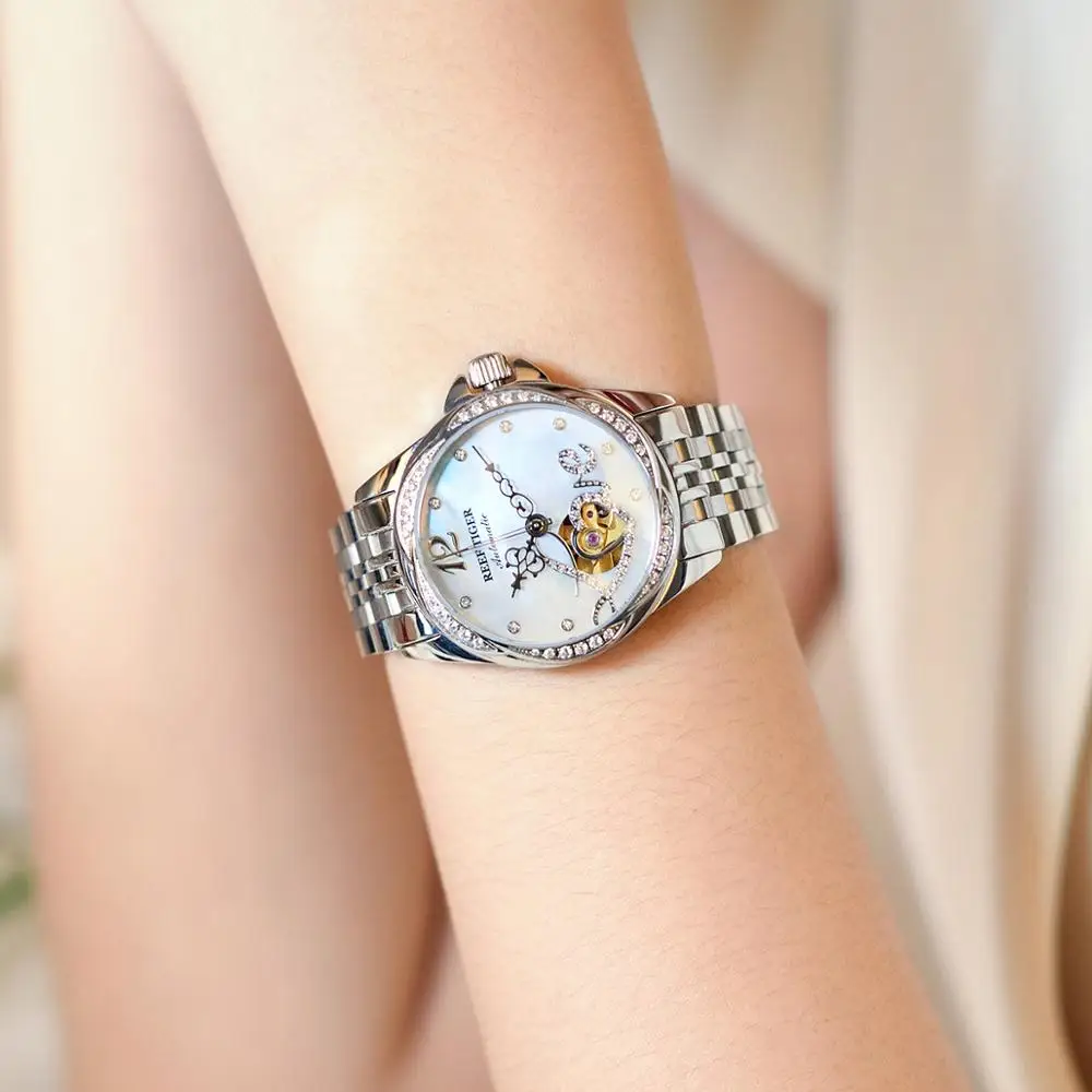 Женский браслет из нержавеющей стали с цветами и бриллиантами