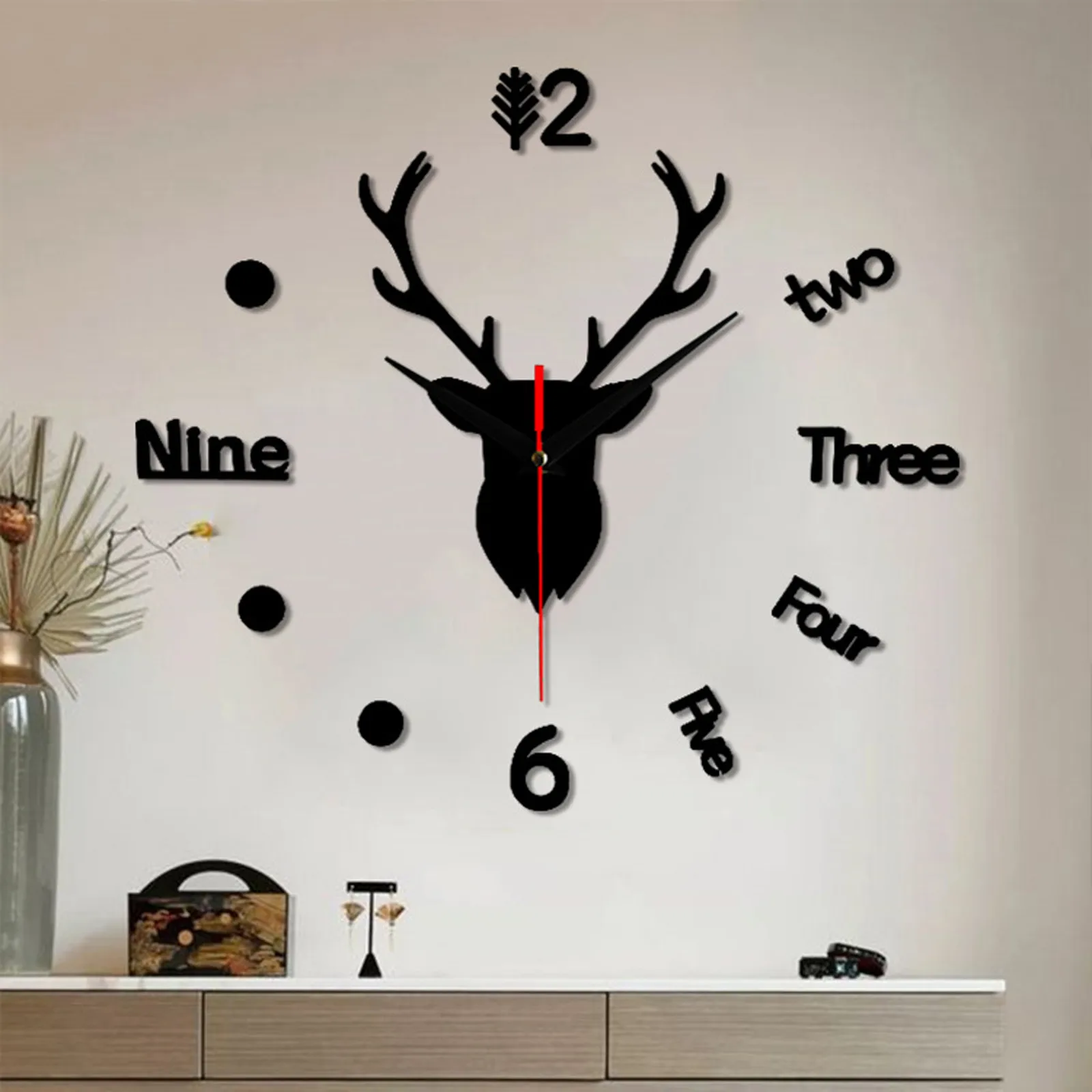Большие настенные часы с головой оленя-отличная идея для декора дома/магазина, гладкогоСтены, гостиной, спальни, офиса, зала и т. Д.