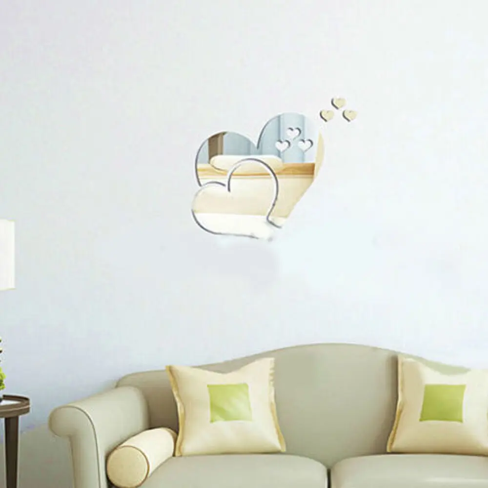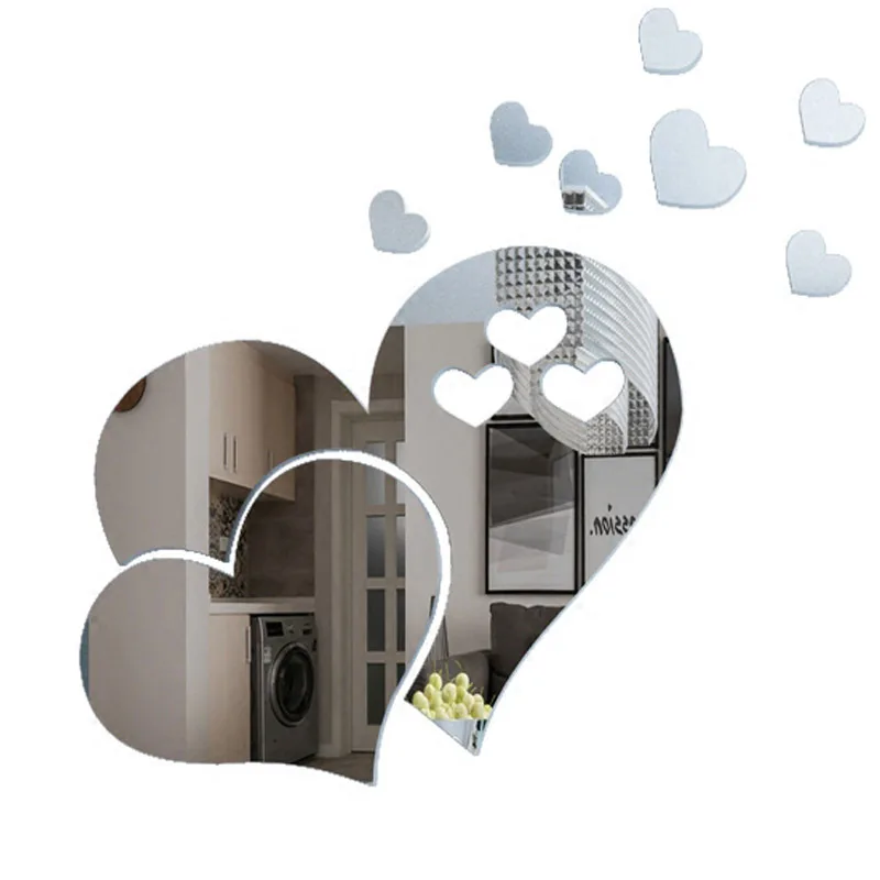 3D Зеркальная Наклейка стикер на стену в форме сердца, 1 комплект, художественное украшение сделай сам для дома, комнаты, узор любовь, съемная наклейка для туалета наклейки для стола