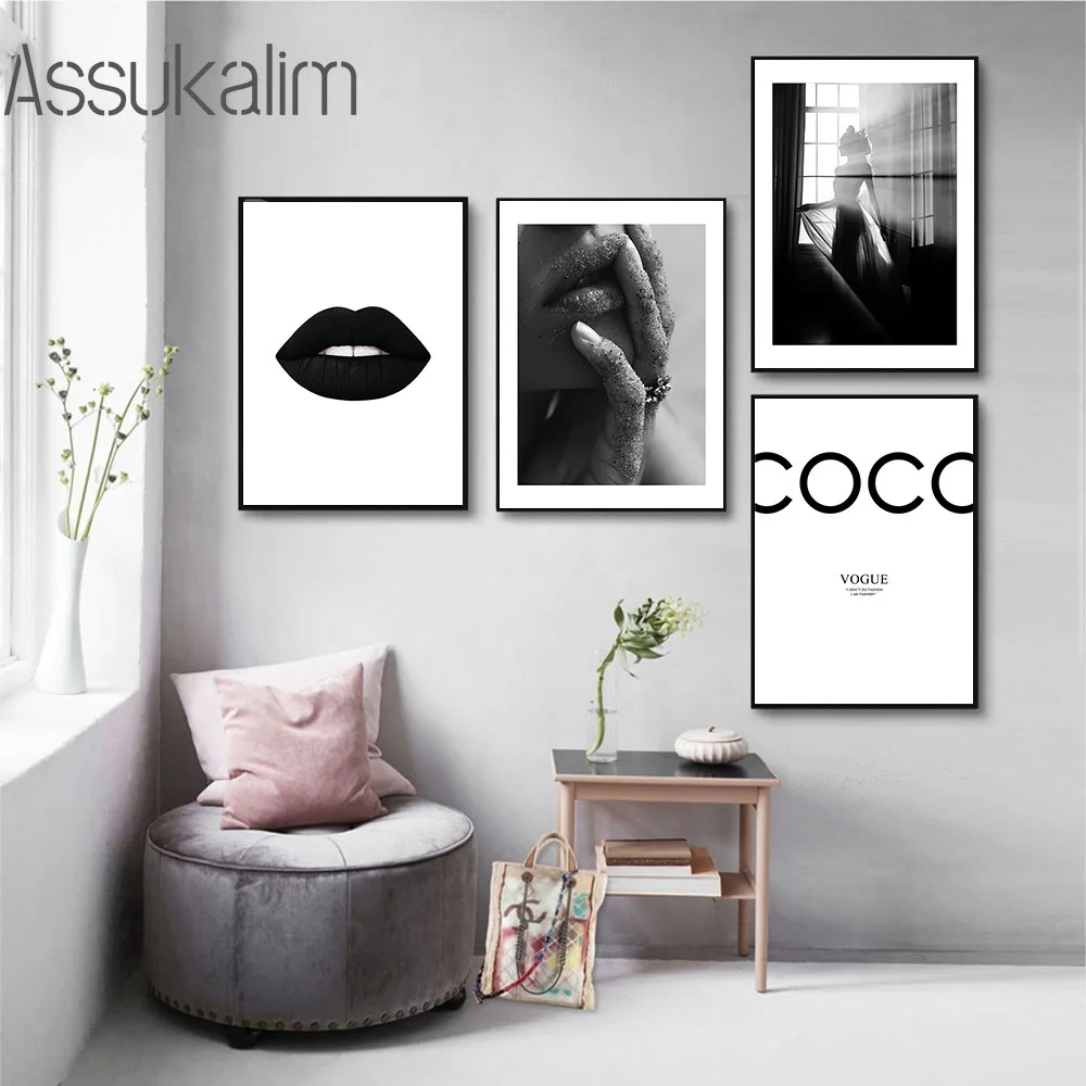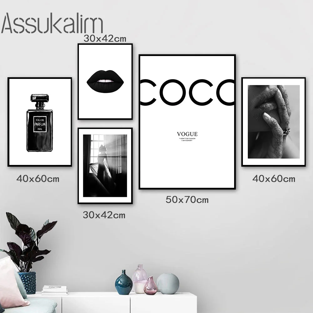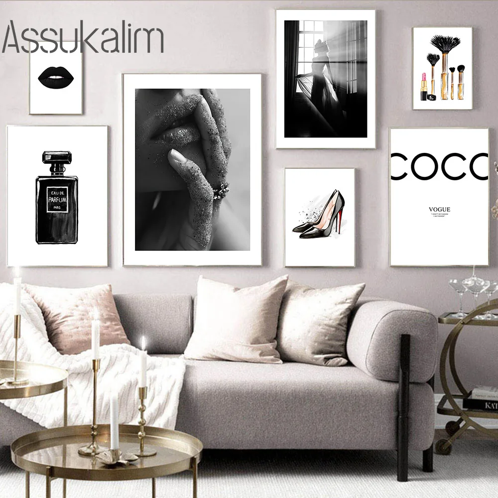 Печать флакона духов, черная и белая Картина на холсте, настенный плакат с губами, Ретро Художественный принт, настенные картины в скандинавском стиле, декор для гостиной