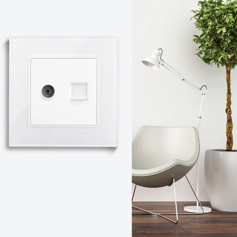 Тип: настенная розеткаЦвет: белыйМатериал: Хрустальное стеклоИспользование для: компьютера, телевизора, телефона, спутникового телевиденияРазмер изделия (Д * Ш): 86 мм * 86 ммШаг отверстия: 60 ммРабочий ток: слабый токПродукт включает в себя: гнездо, два винта
