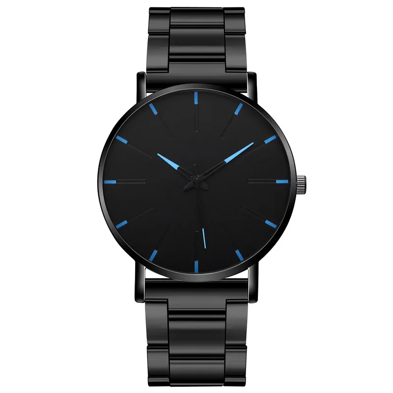 Часы наручные мужские кварцевые с ультратонким стальным ремешком, п...