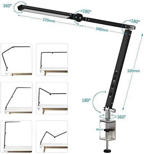 Примечания: зажимные винты с тигром цвет зажима из нержавеющей стали.Светодиодный диммер для офиса/домашнего чтения для детей и взрослых, студентовТройная защита здоровья глазДиффузионный полупрозрачный материал для прозрачной доски, делает светильник мягким и сбалансированным;Большой светодиодный светильник, светильник излучается со стороны панели, избегайте вреда для глаз от вертикального светильник;Цветовая температура 3000K-6500K, теплый белый светильник, Blu-Ray является самым слабым, чтобы ваши глаза расслаблялись в течение длительного времени чтения и работы.Отличные характеристики:Стильная двухрычажная дизайнерская лампа из алюминиевого сплава, стабильная и прочная Поддержка питания.Felixble складной и мульти-угол вращения, просто любой светильник в любом направлении, как вам нравится.IEC сертифицированный чип, время освещения в течение более чем 50000 часов.Спецификация лампы:Название продукта: настольная лампа/Офисная лампа/домашняя лампа/лампа для чтенияРегулировка яркости: ДаИсточник питания: Электрический кабельНапряжение: 100-240 ВМощность: 8 ВтСветовой поток: 800 люменовCRI: RA>80Адаптер: 12 В постоянного тока 1AУслуги срок службы: 50000 + часовЦветовая температура: 3000K ~ 6500K РегулируемаяМодель переключателя: кнопка, пульт дистанционного управленияМатериал абажура: АБС-пластикМатериал рукоятки: алюминиевый сплавТип фиксации: винты с зажимом, основаниеЗажим для Ширина: подходит для макс 5,5 см/2,15 дюйма толщина столаПосылка включает в себя:1 * Светодиодный Настольный светильник1 * зажим (опционально)1 * переменного тока 12V/1A адаптер1 * пульт дистанционного управления (опционально)1 * Руководство пользователяПримечание:A Тип: 3 Цветовая температура 3000k-6500k, изменяемая яркость, с пультом дистанционного управленияТип B: белый светильник или теплый белый светильник, изменяемая яркость, без пульта дистанционного управления