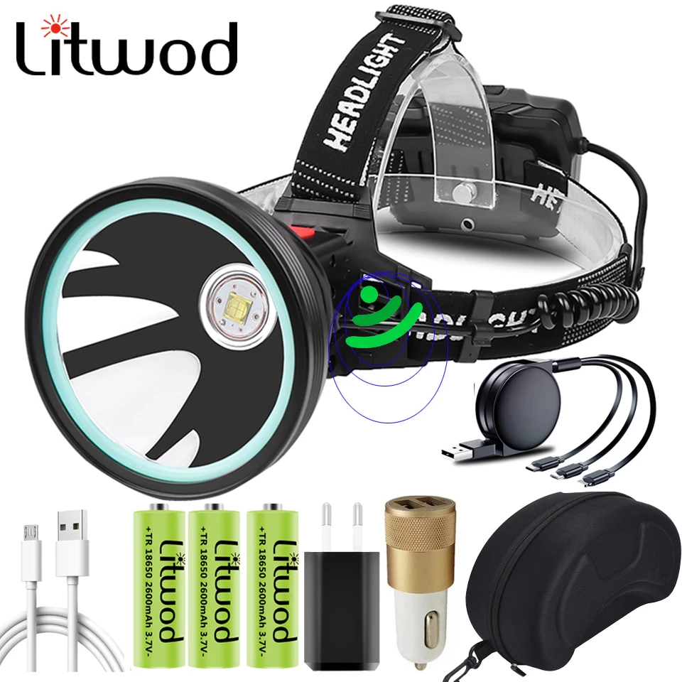 Xhp90.2 4 ядра датчик головная лампа Налобная фара 32 Вт 4291lm светодиодные лампы 3*18650 аккумулятор 7800 мАч 3 режима XHP70 XHP50