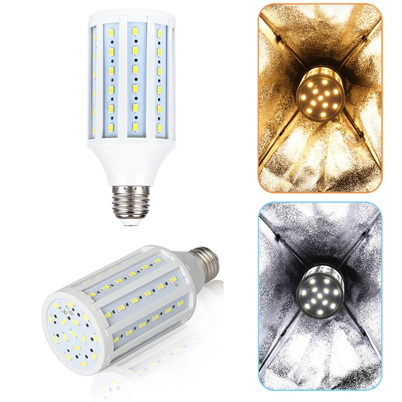 Светодиодные лампы высокой яркости E27 для фотосъемки, осветительные приборы в форме кукурузы, белый и желтый светильник для софтбокса, для студийной фото-и видеосъемки