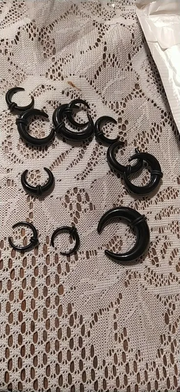 Чудесные растяжечки! В наборе 12 штук, попарно 6. Размеры совпадают, с них можно начинать тянуть. Они на самом деле ровные и не травмируют ухо. Сами тоннели круглые и аккуратненькие, ничего не болит, если хорошо обработать. Пришли в срок (с учётом чёрной пятницы)!!!