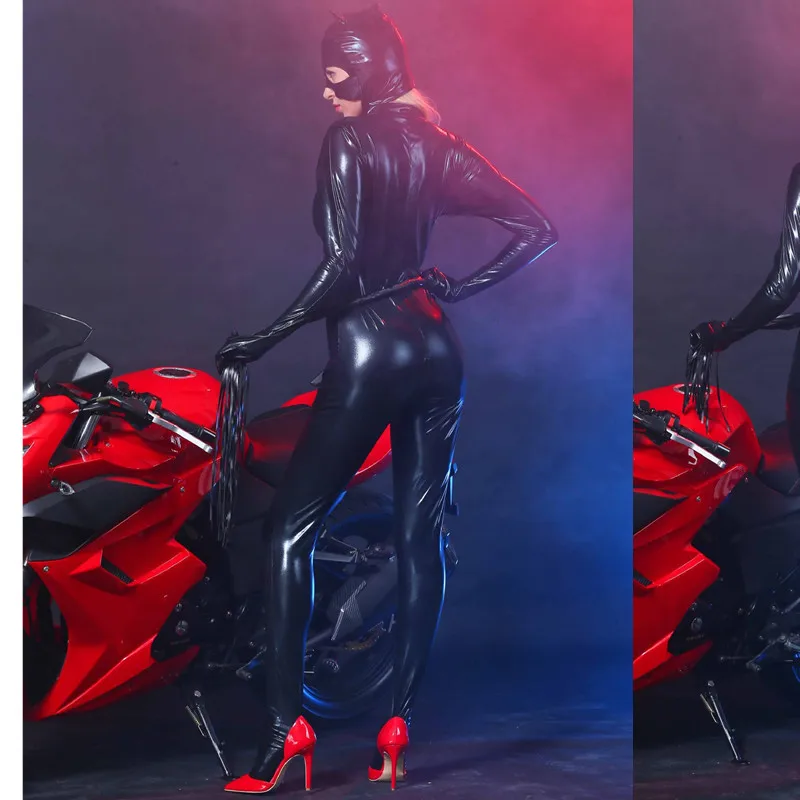 Комбинезон женский из искусственной кожи, пикантный эластичный комбинезон из ПВХ на молнии с открытой промежностью, ночная Клубная одежда, чулки, эротические костюмы