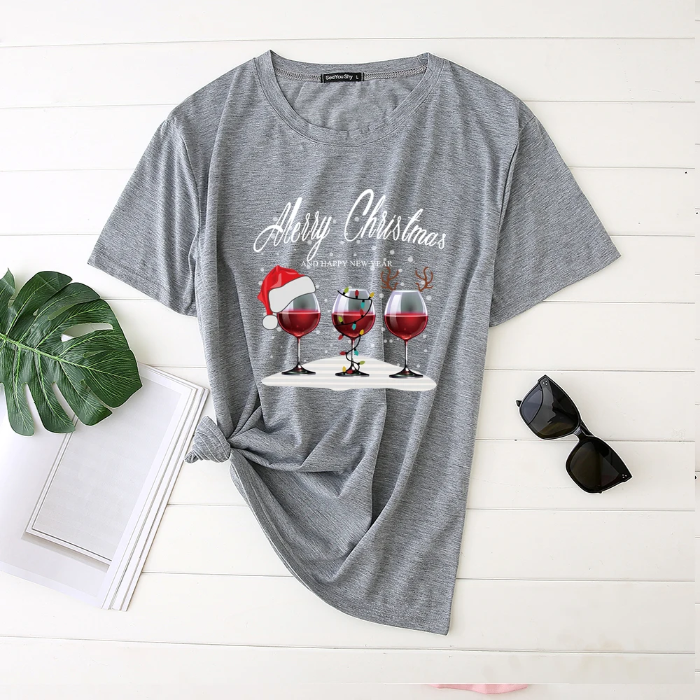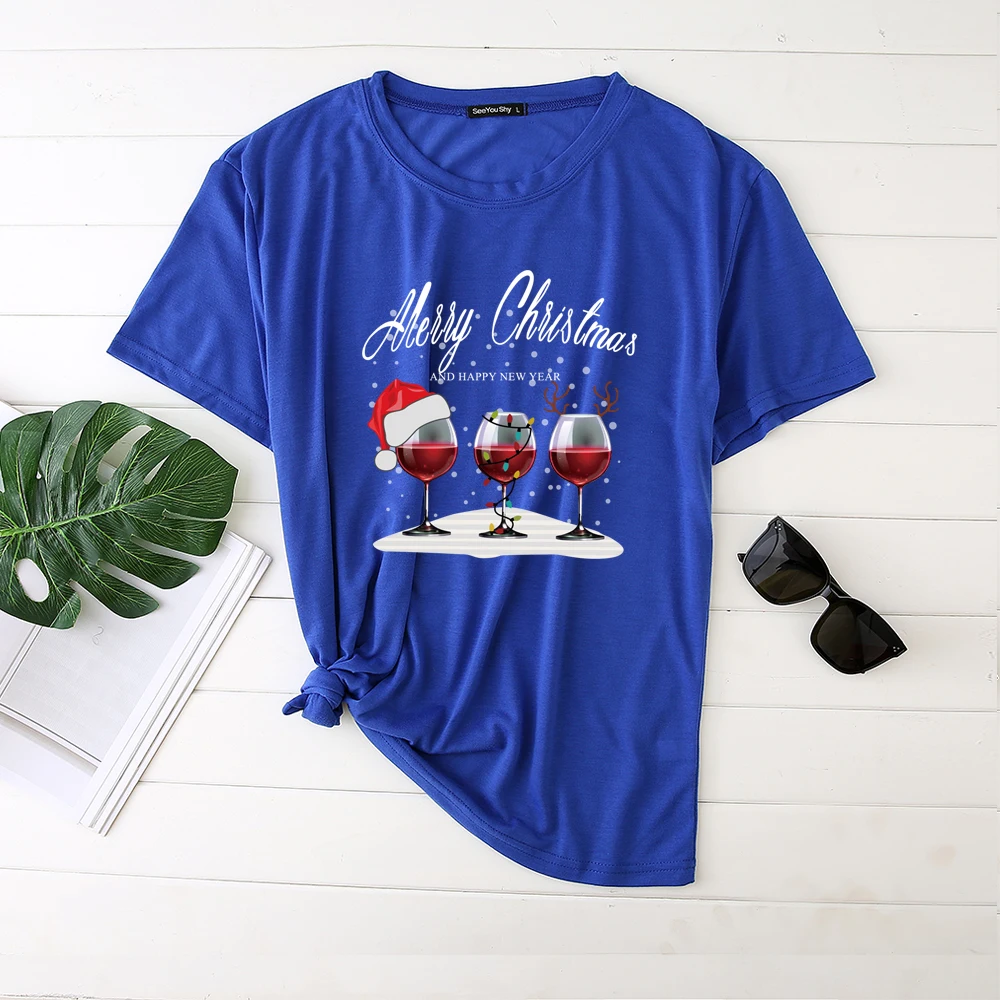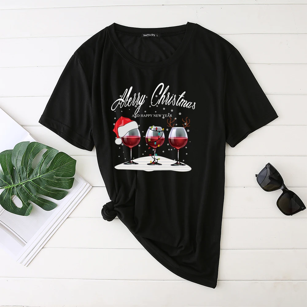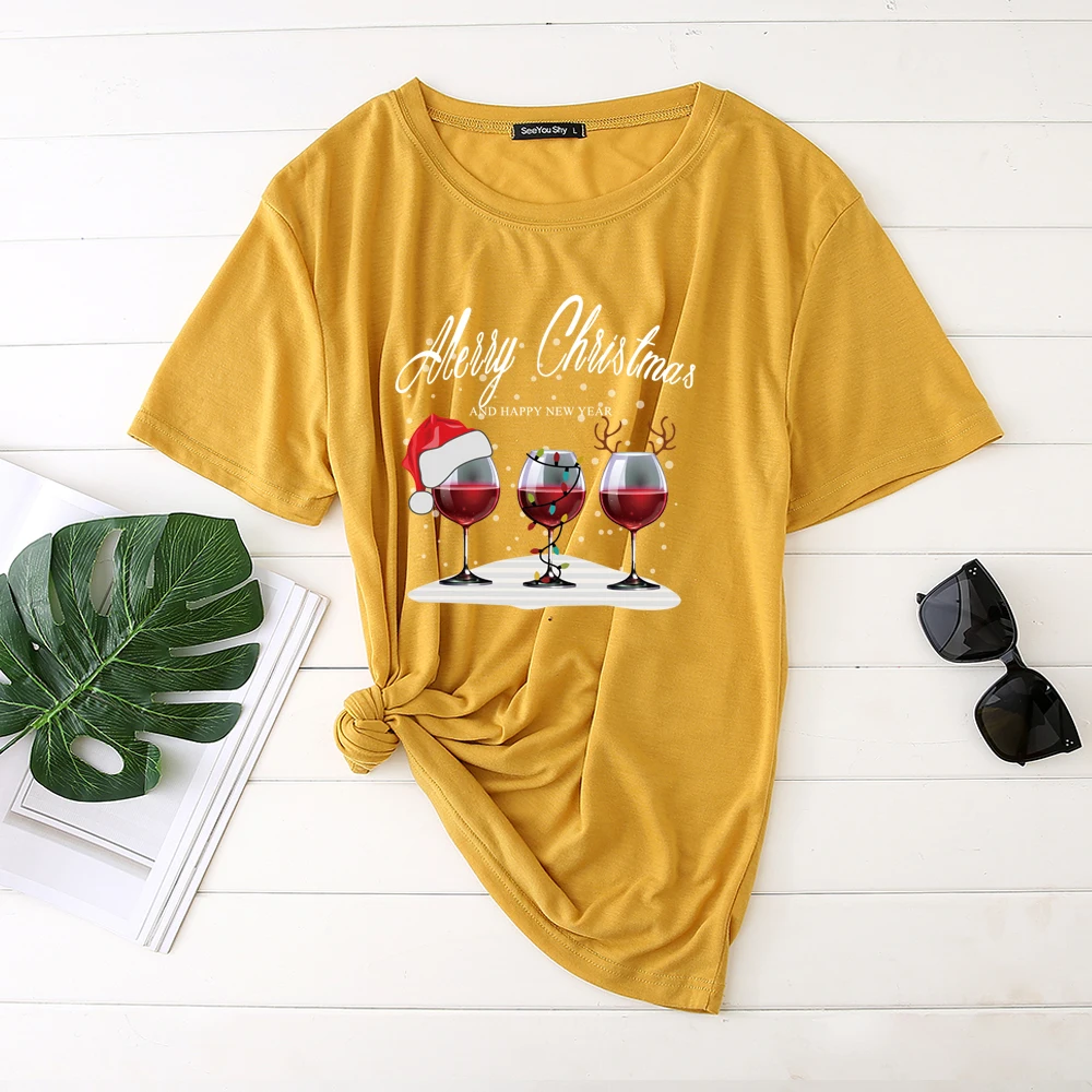 Футболки женские с рождественским принтом Seeyoushy, повседневные топы в стиле Харадзюку для девочек-подростков, хлопковые футболки с коротким рукавом, размера плюс