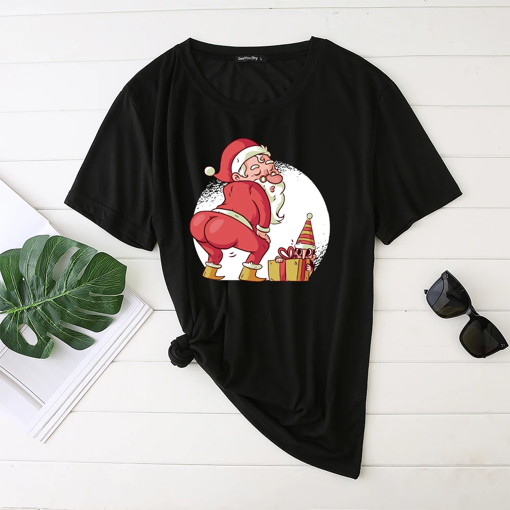 Женские футболки с принтом Санта Клауса Seeyoushy, топ в стиле Харадзюку, женские рубашки для женщин, модная одежда с коротким рукавом, большие размеры, 2020