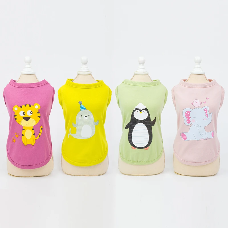 Одежда для собак из 100% хлопка жилет без рукавов для собак весна-лето Милая мультяшная одежда с принтом пингвина слона для домашних животных Одежда для маленьких и средних собак
