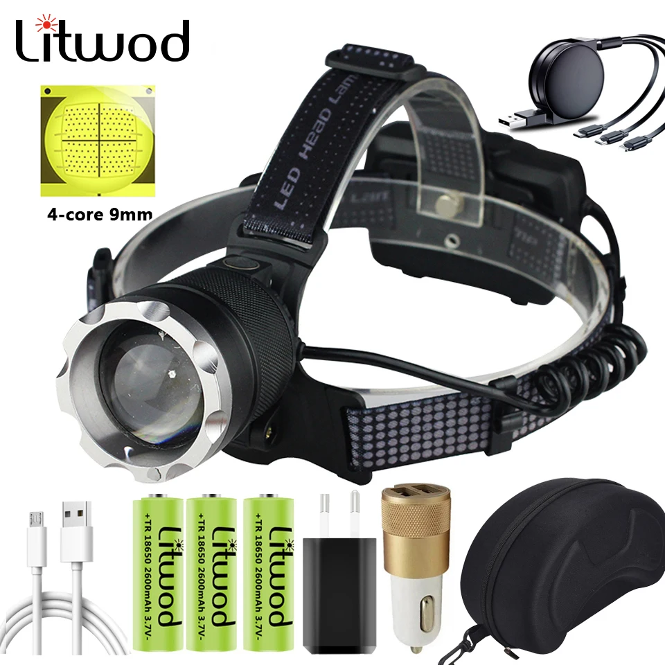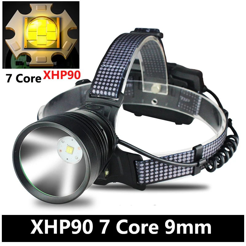 Xhp90.2 7-ядерный светодиодный налобный фонарь, встроенная охлаждающая забавная Налобная лампа с зумом, фонарик, внешний аккумулятор 7800 мАч, 3*18650 батарея, фара