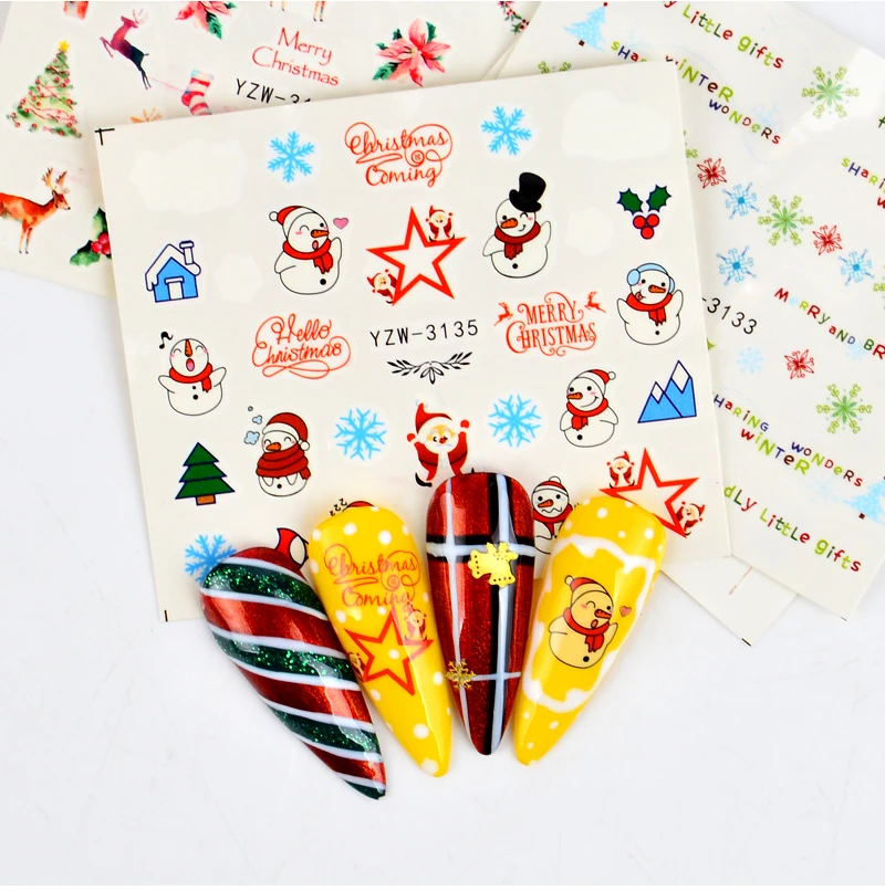 1 шт. Мультяшные Рождественские Водные Наклейки для ногтей Санта Снег хлопья зимний Снеговик Дизайн маникюрный дизайн ногтей Декоративный наконечник