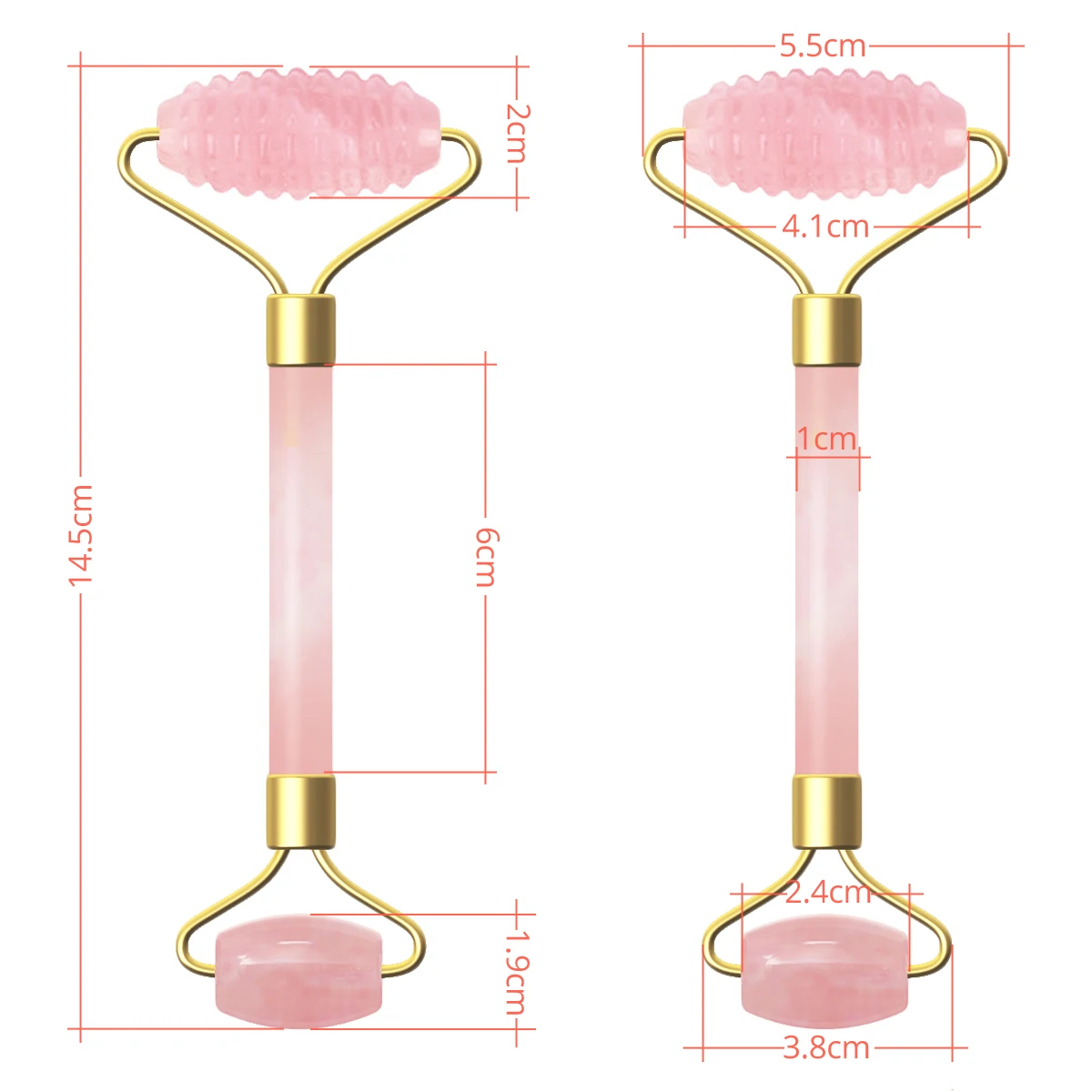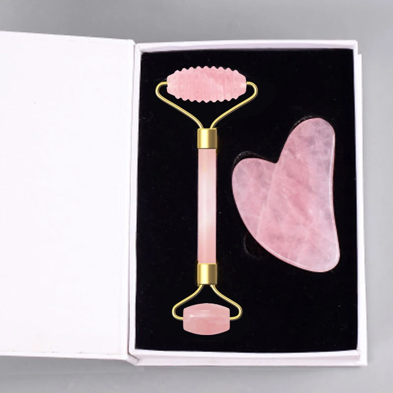 Нефритовый ролик из Натурального Розового Кварца, гуашь в наборе скребок для лица, Нефритовый камень, ролик для лица, гуаша, массажный ролик для лица