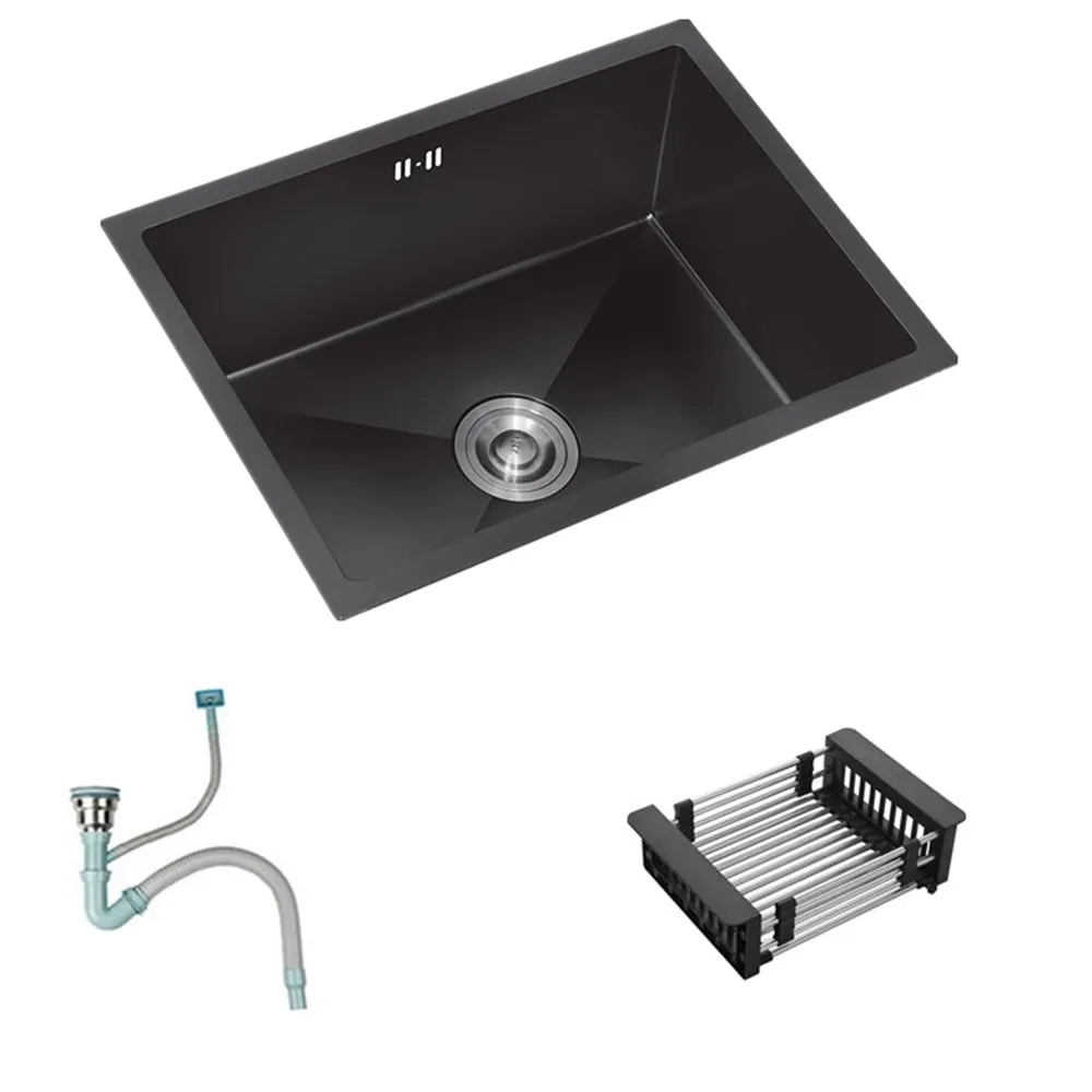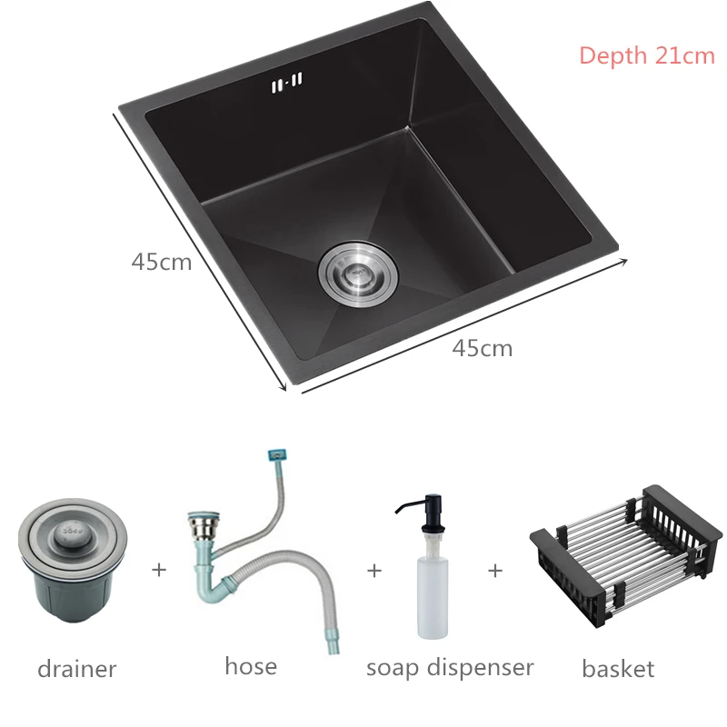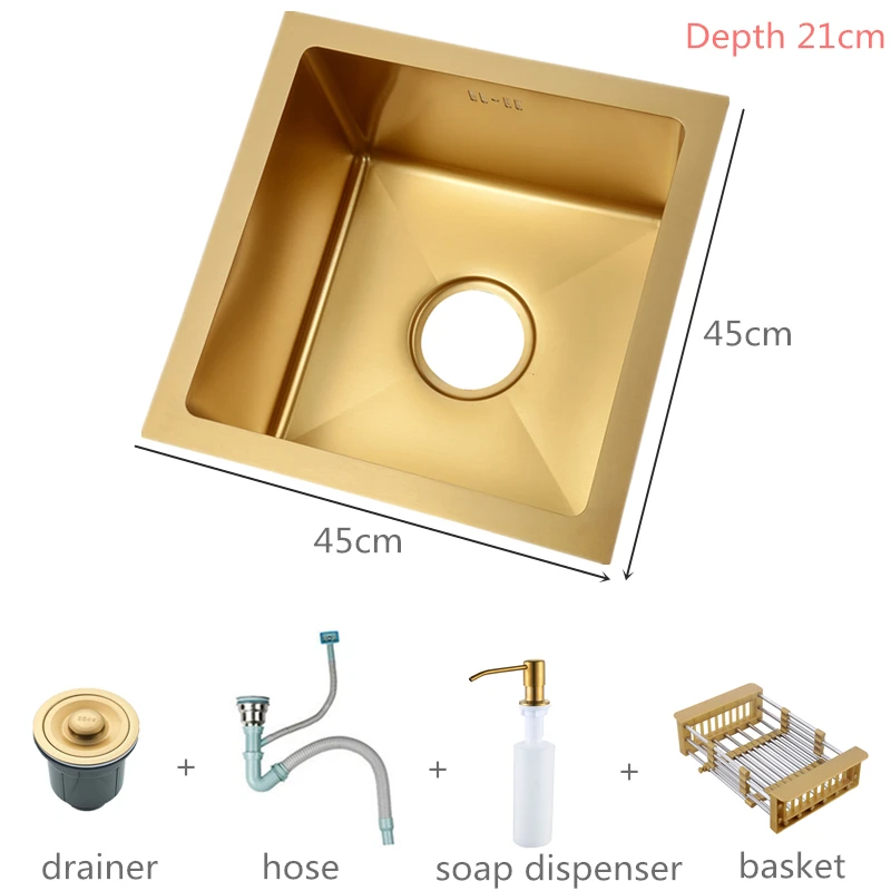 Кухонная раковина 17,7 ''без смесителя, одна чаша, матовая Золотая раковина из нержавеющей стали с сушильной корзиной и аксессуарами