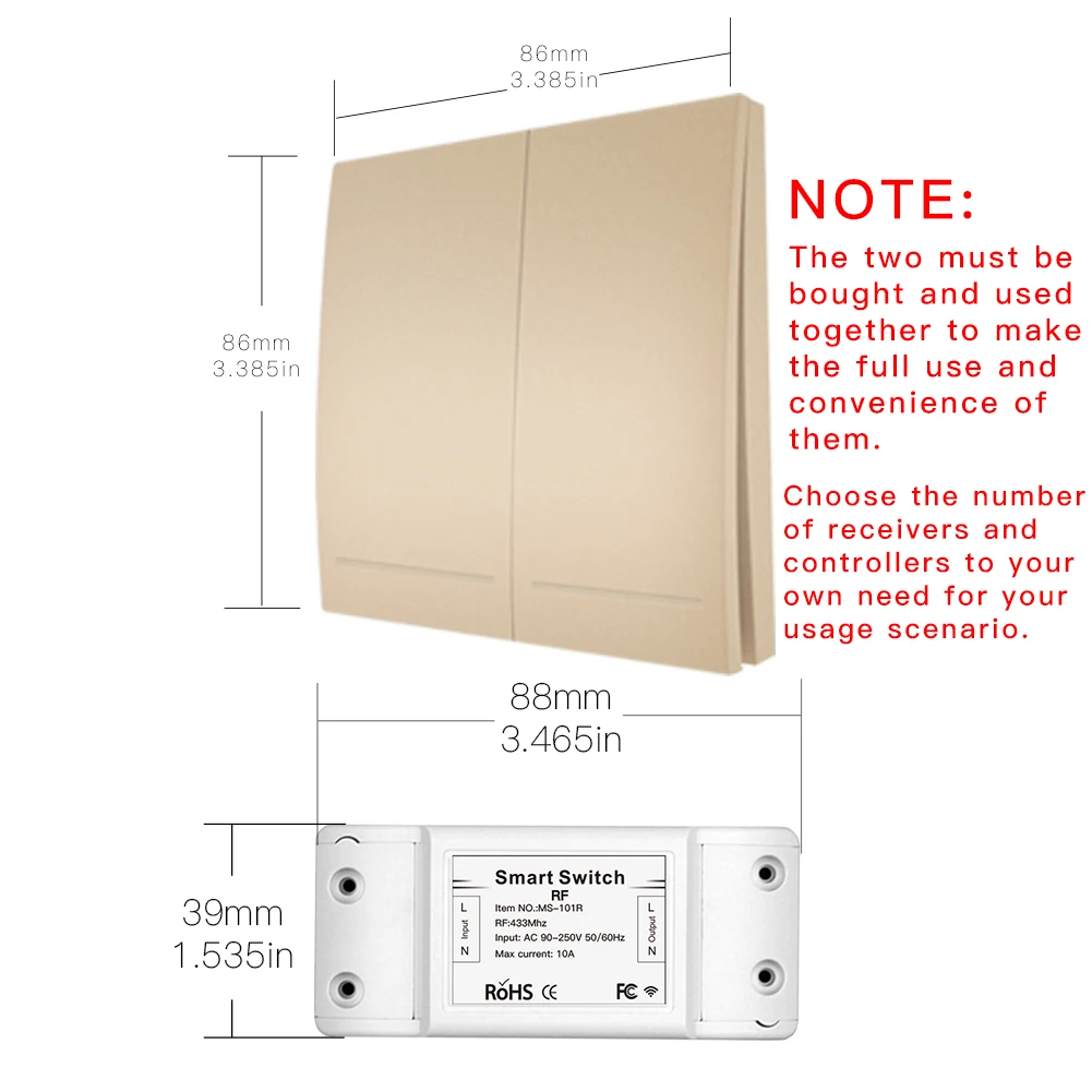 4.Внимание: релейный приемник RF433 и переключатель дистанционного передатчика на стеновой панели должны использоваться вместе, так что вы не можете купить один приемник или один переключатель один.