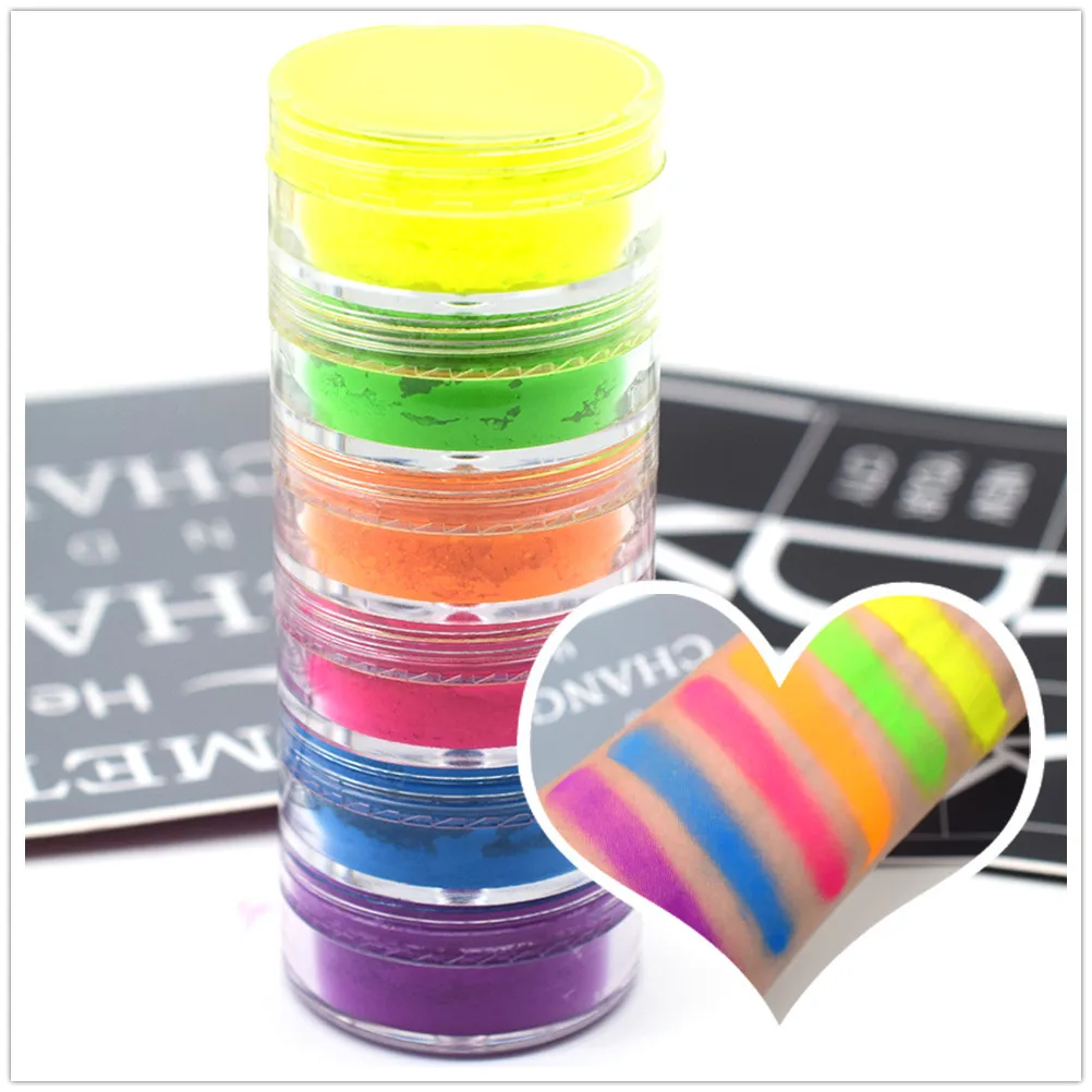 6 цветов/партия, смешанные неоновые тени для век, порошок, матовые минеральные блестки, тени для век, легко наносятся, водонепроницаемые тени для век, макияж