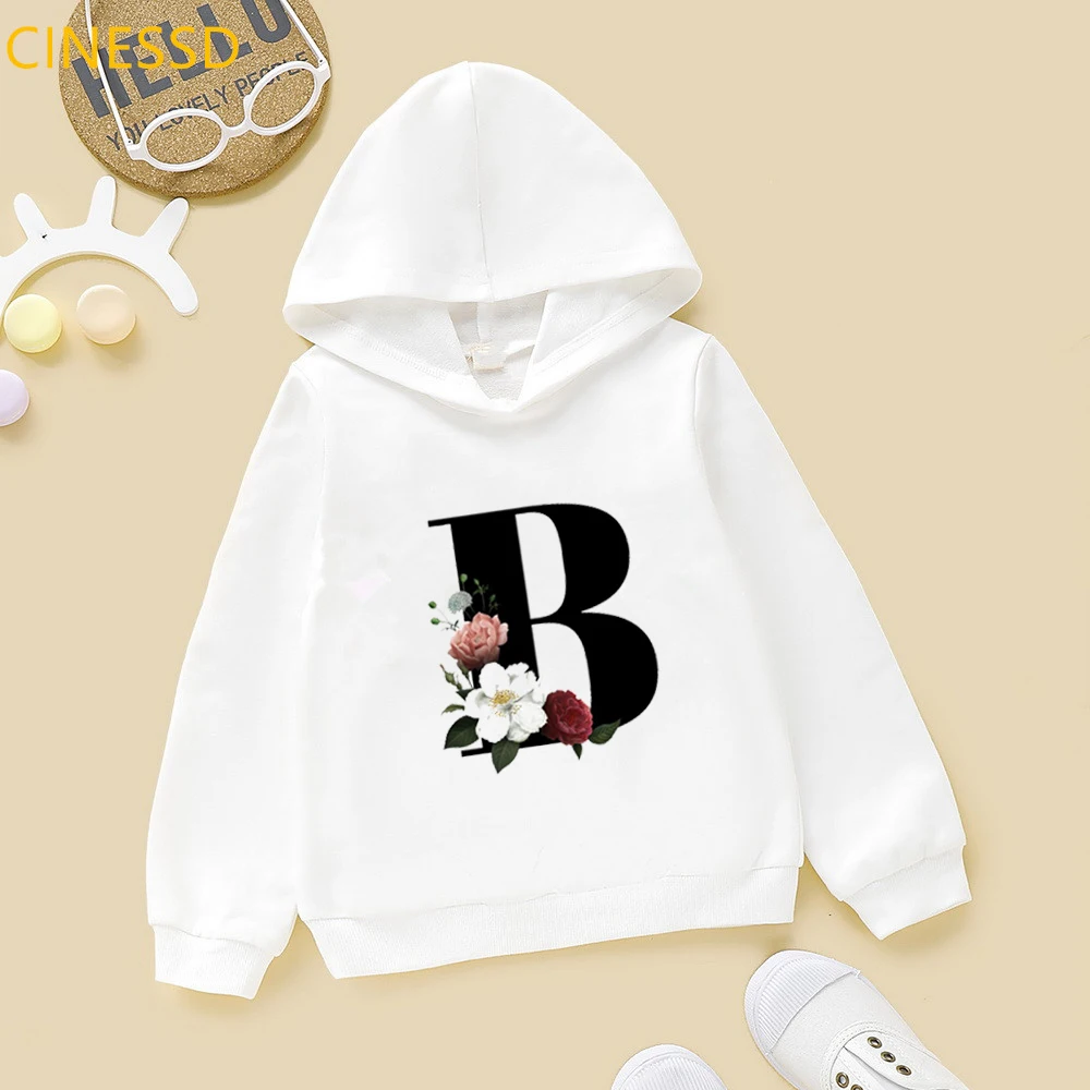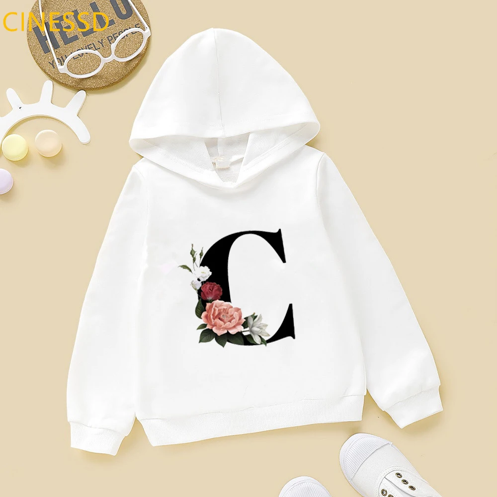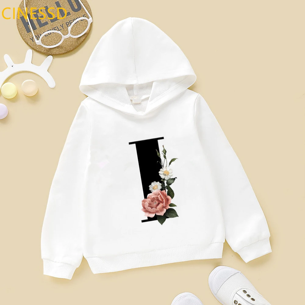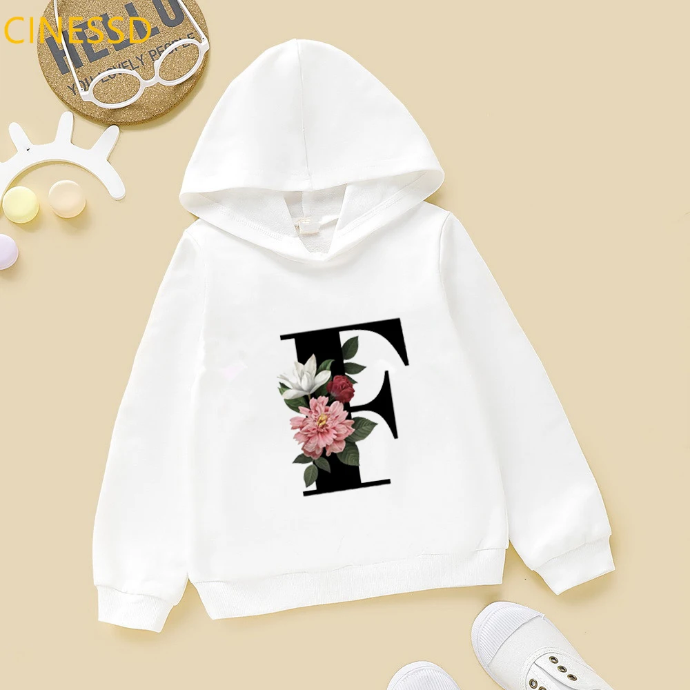 Новинка 2021, детские толстовки с цветочным принтом Английский алфавит, зимние милые белые и желтые толстовки с капюшоном для маленьких девочек, топы