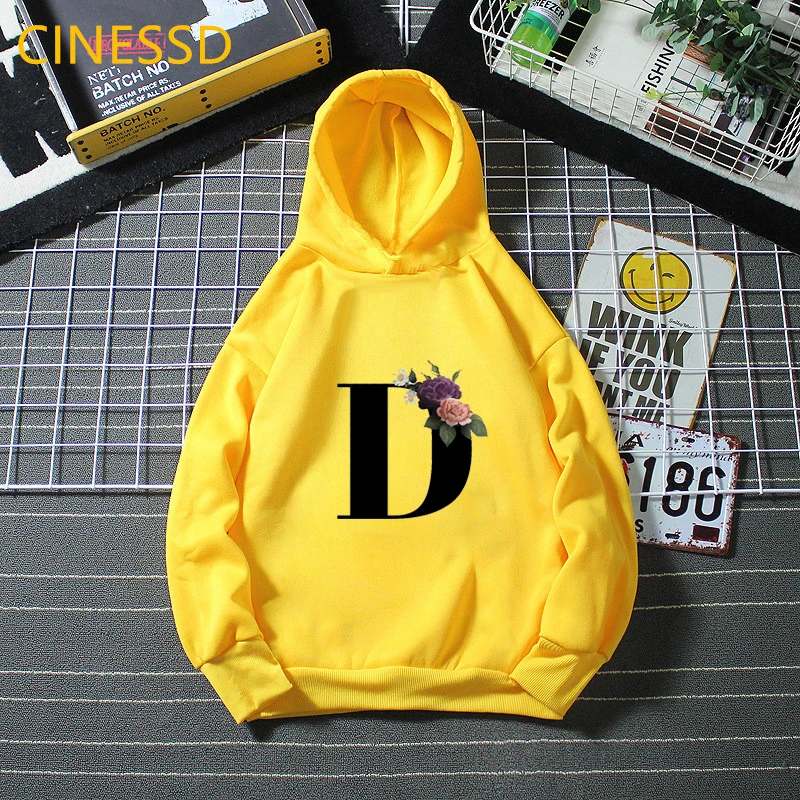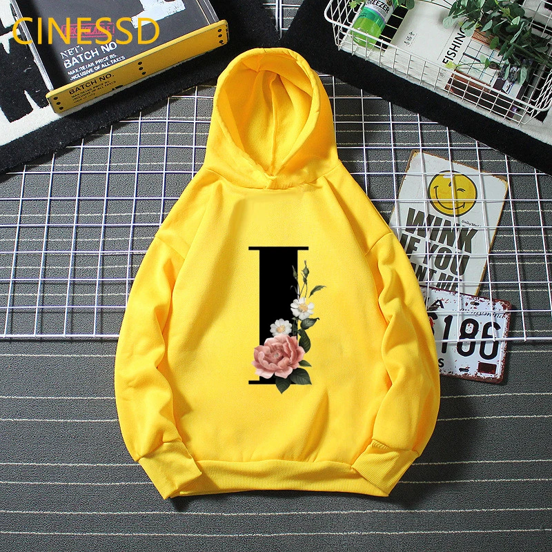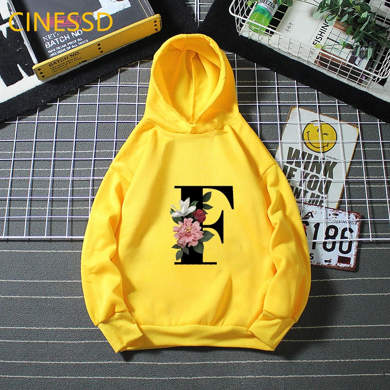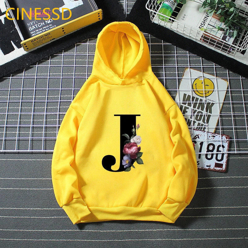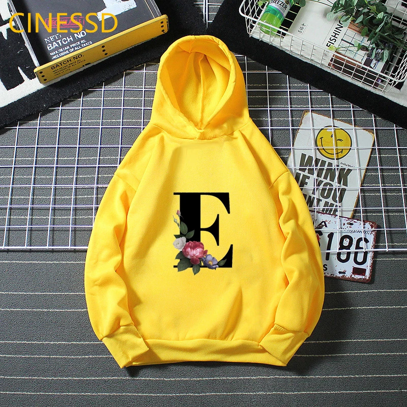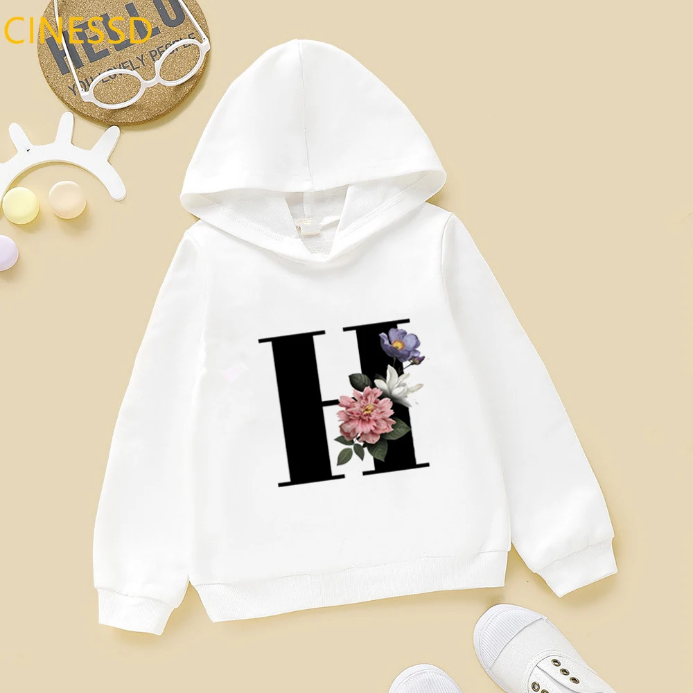 Новинка 2021, детские толстовки с цветочным принтом Английский алфавит, зимние милые белые и желтые толстовки с капюшоном для маленьких девочек, топы