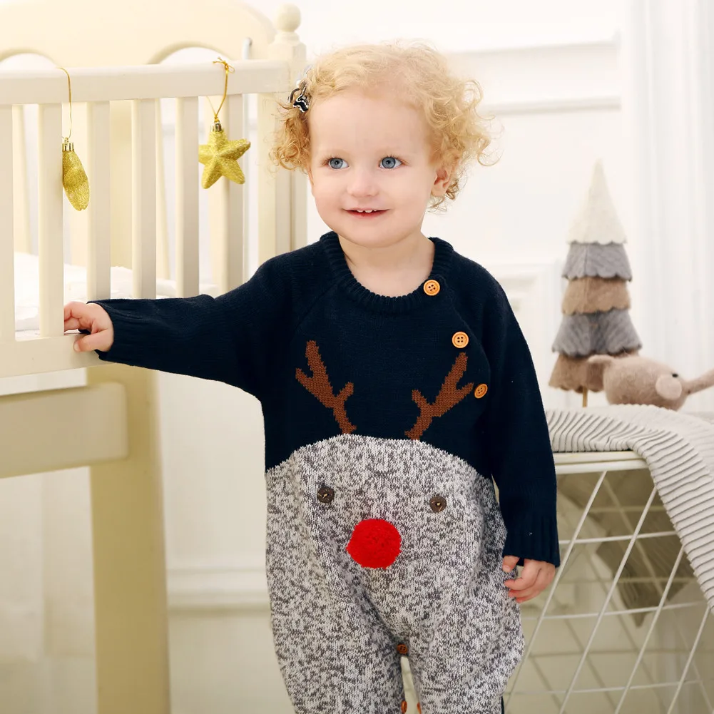 Рождественские комбинезоны для малышей, вязаные джемперы с оленями ...