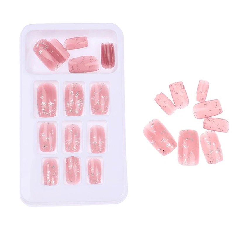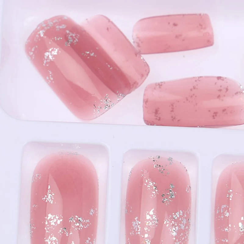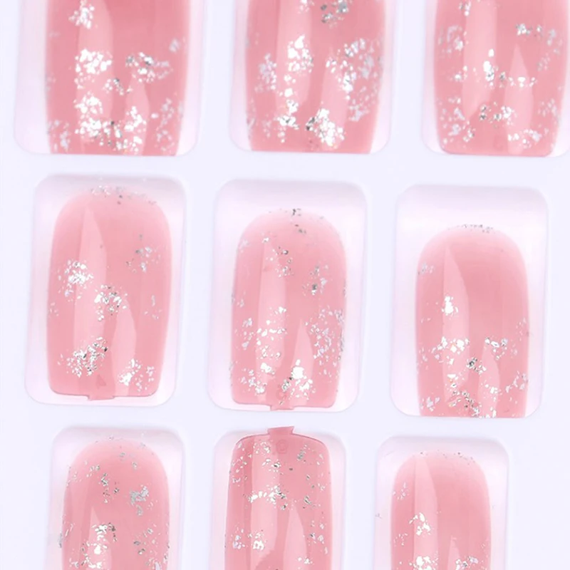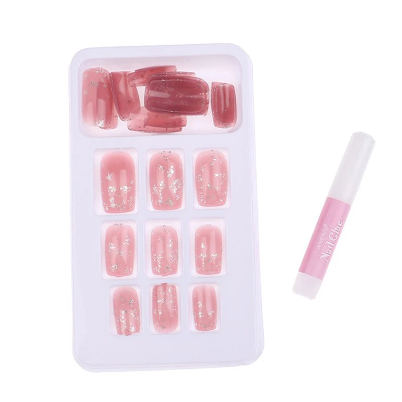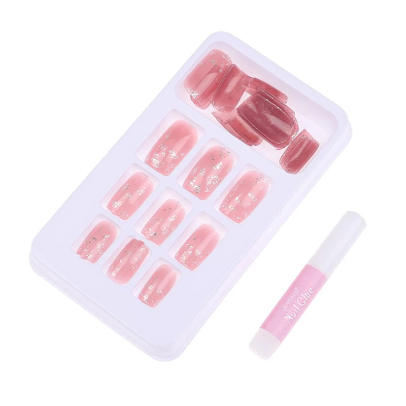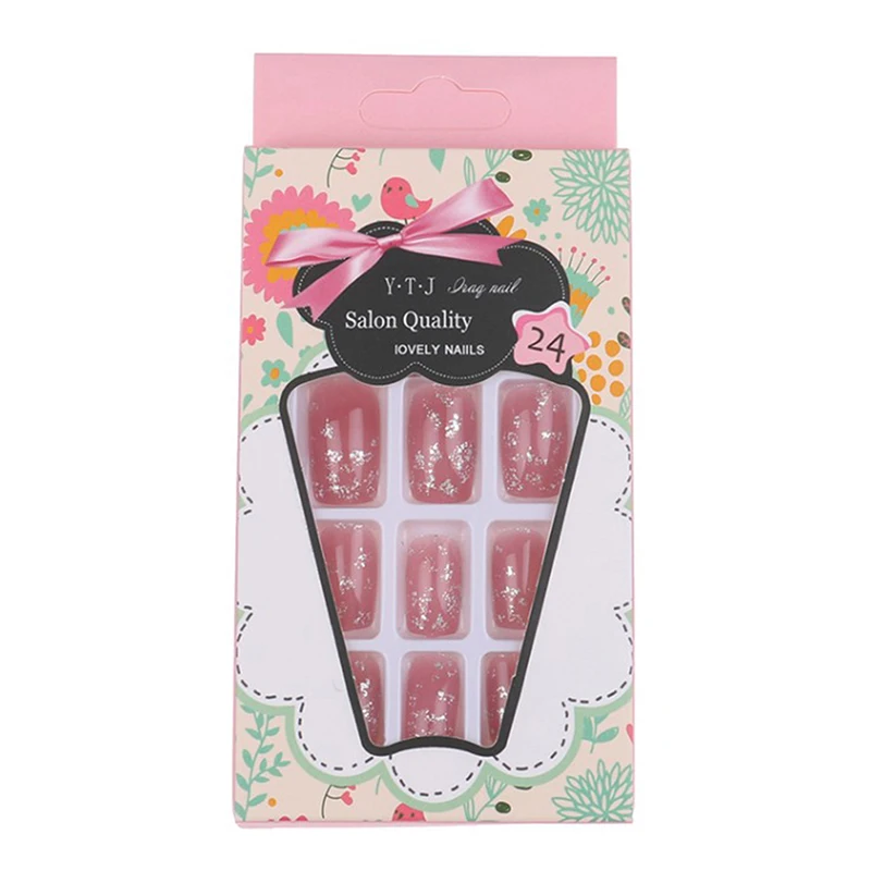 24 шт розовые блестящие прямые длинные накладные ногти полное покрытие ногтей накладные клей для ногтей милая, стильная накладные ногти украшения для ногтей с клеем