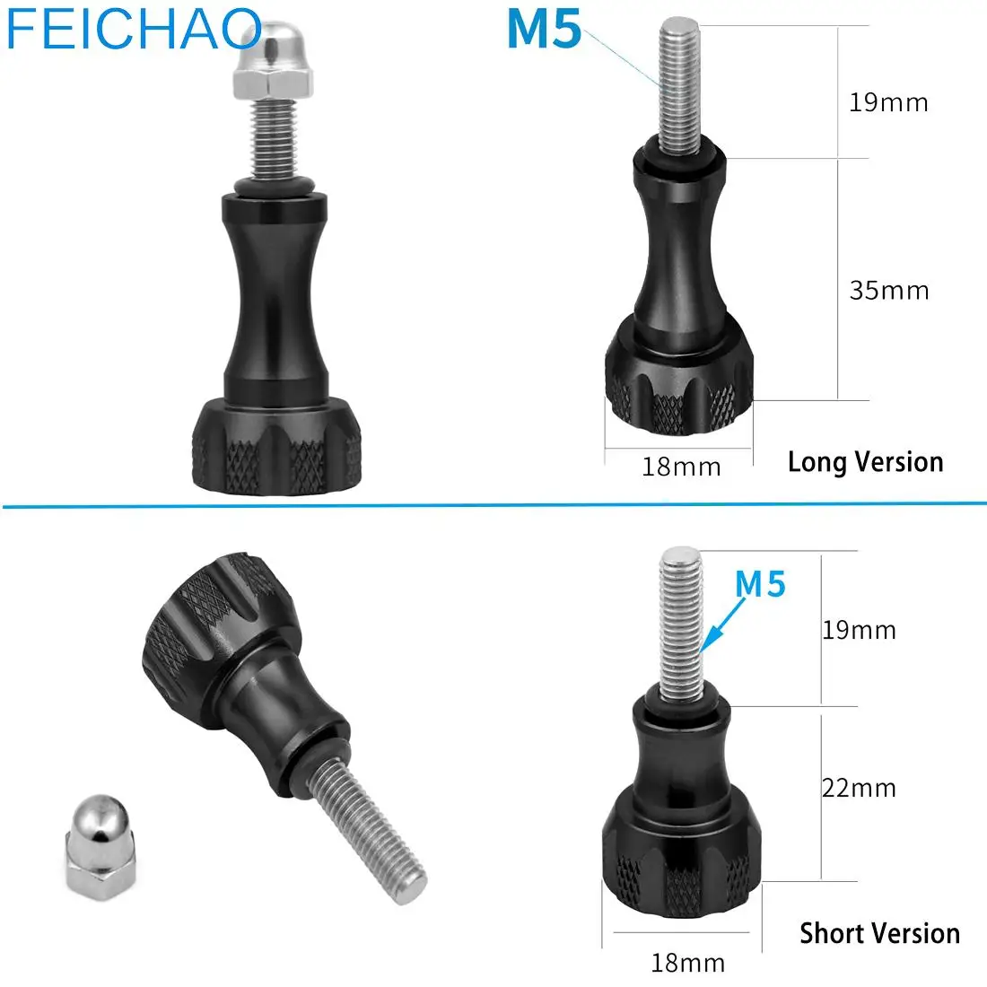 1 винт с ЧПУ с черной гайкой M5 для экшн-камер Gopro Hero 10 9 8 7 6 5 3 Xiaoyi SjCam, винты из алюминиевого сплава M5, аксессуары