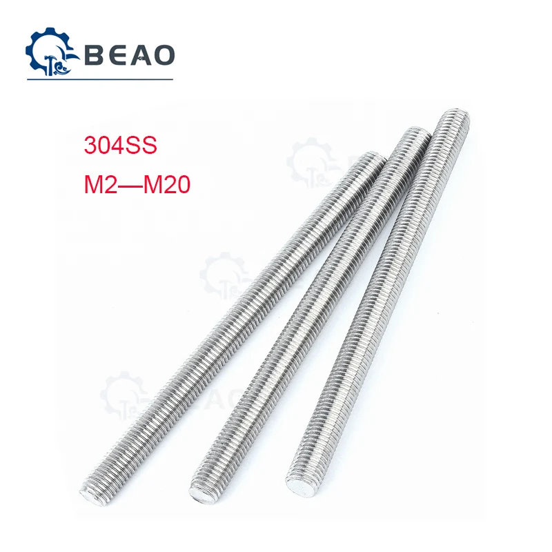 Стержни с полной резьбой из нержавеющей стали M2-M20, 304, брусок стержня, 1 шт., стержни с винтами, все зубья, длина стержня 150-500 мм