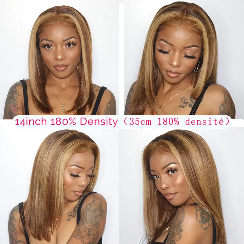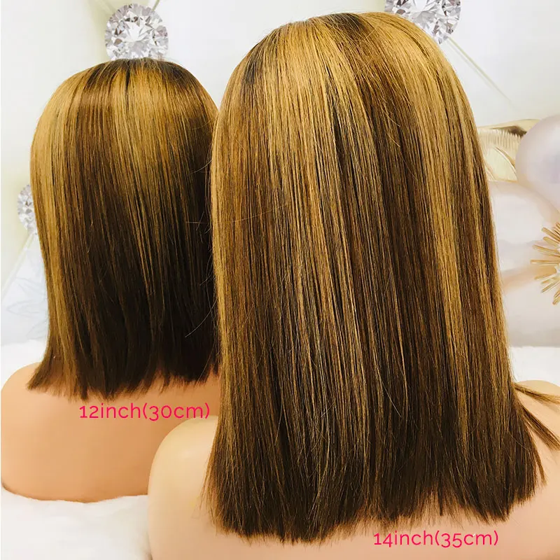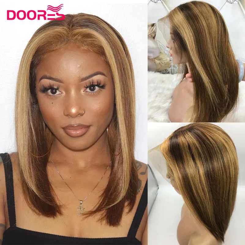 Боб 250 плотность Синтетические волосы на кружеве парики из натуральных волос на кружевной с эффектом деграде (переход от темного к светлому), парик коричневый парик 13x4 прямой парик с головной повязкой для Для женщин Волосы Remy