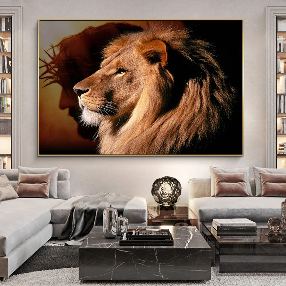 Настенная картина с изображением сильного льва для гостиной, домашн...