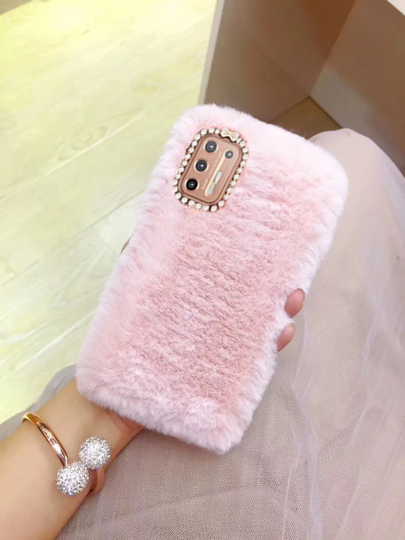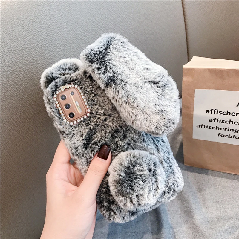 Мягкий чехол для MOTO One Action Vision с пушистым кроличьим мехом ...