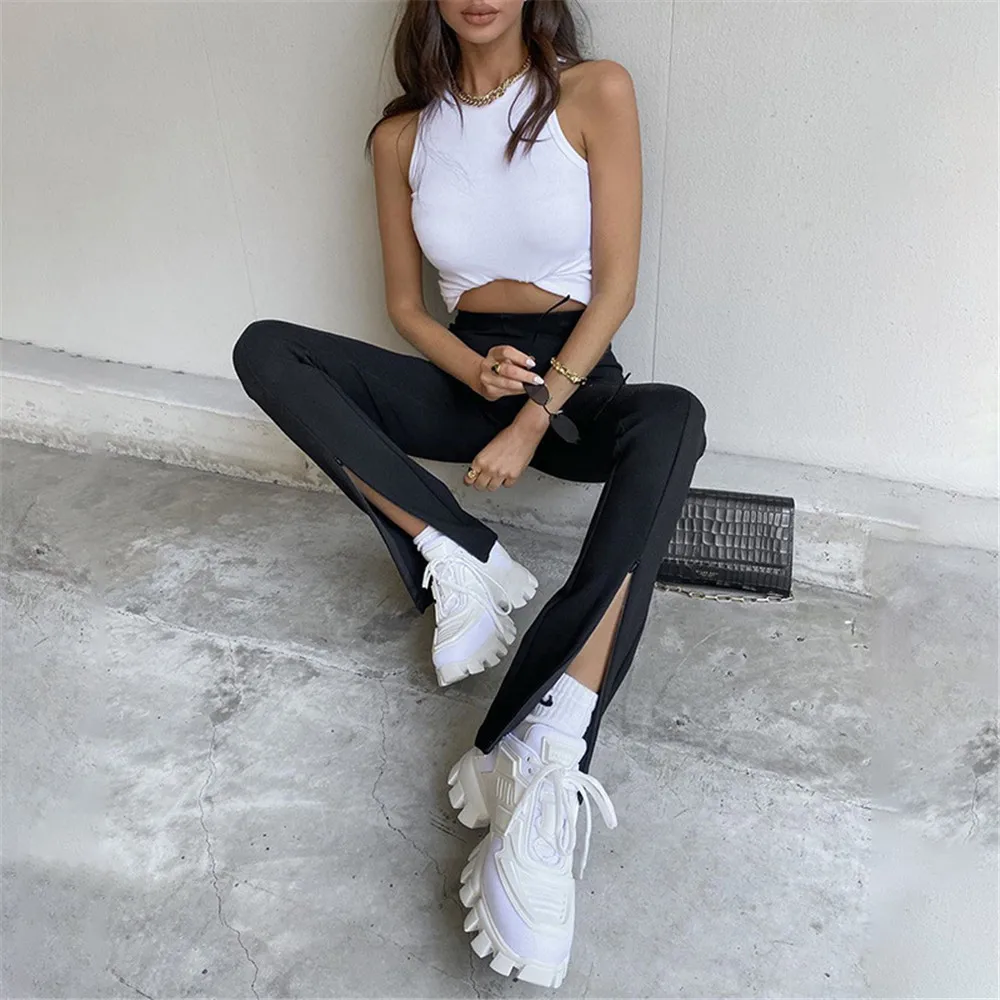 Номер моделиWomen Front Slit Straight Trousers With Zipper