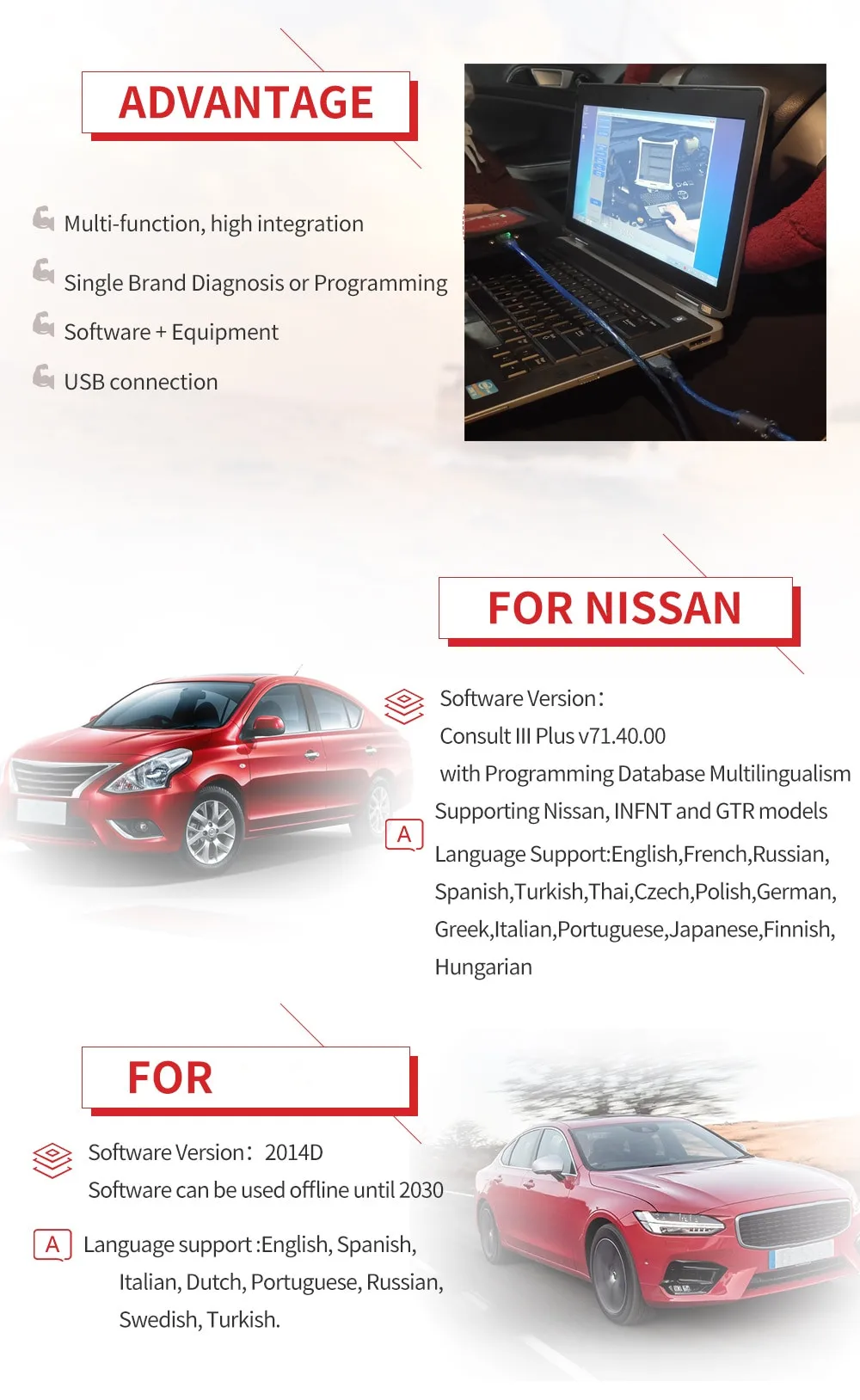 • Удобный графический интерфейс-более понятный графический интерфейс, отображение DTCs во всех системах и т. д. с экраном ПК