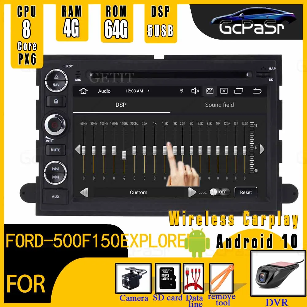Мультимедийный плеер 5USB 64G DSP Android 10 2 DIN автомобильный DVD GPS для Ford 500F150ExplorerEdgeпогрузкаMustangfusionФристайл
