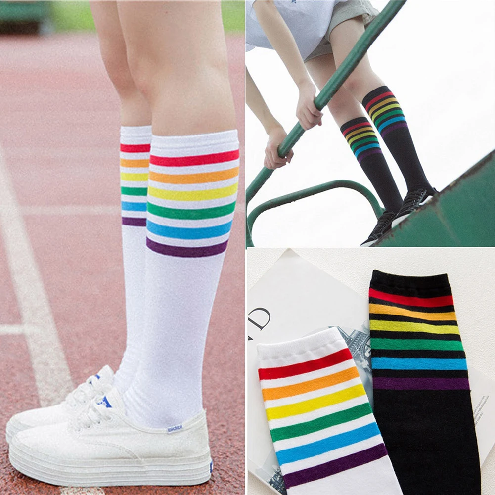 1 пара женские модные носки из хлопка c бантом в полоску цветастой радуги для детей Рождественский подарок Классические Дети Теплая Повседневная обувь с изображением забавных милых поп корейские носки